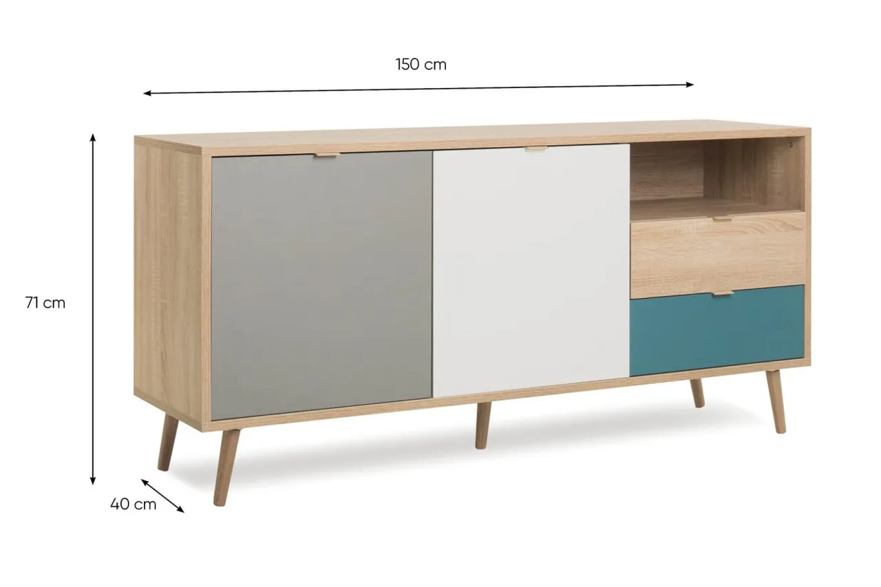 finori Sideboard Cuba 150 cm Dekor Sonoma Eiche / Tricolor Lowboard
