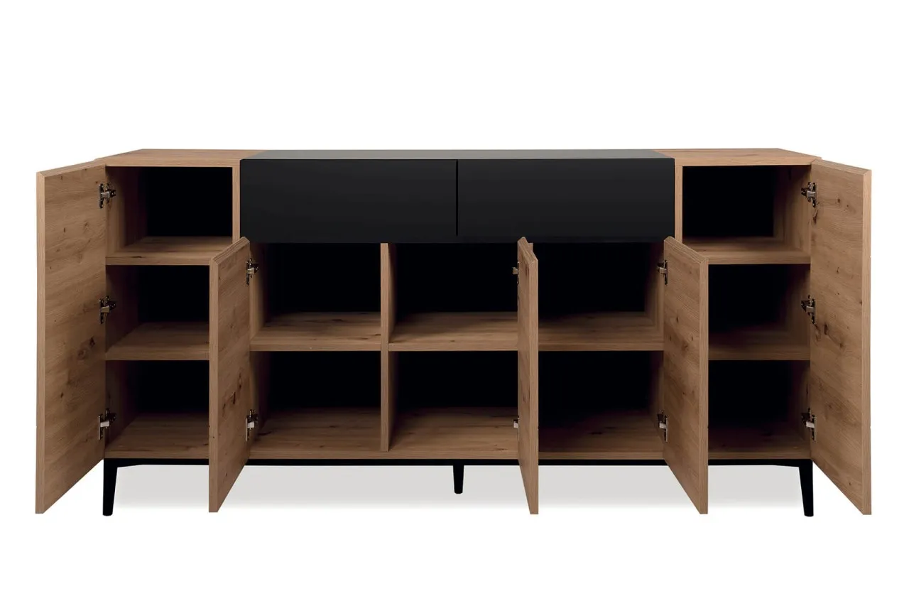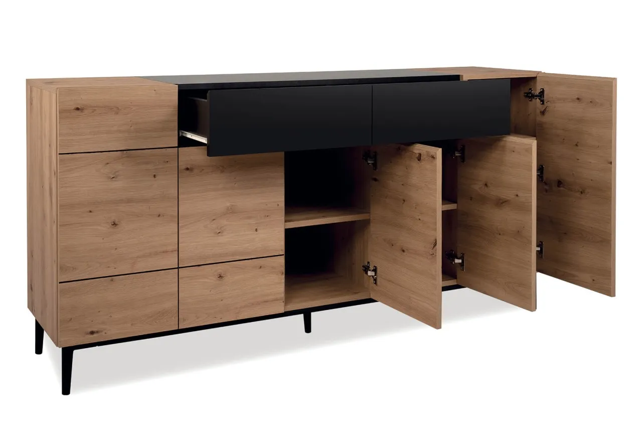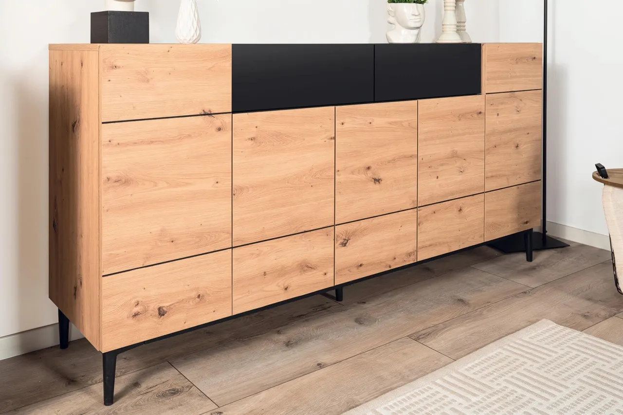 finori Sideboard Nola 180 cm Dekor Artisan Oak schwarz Kommode