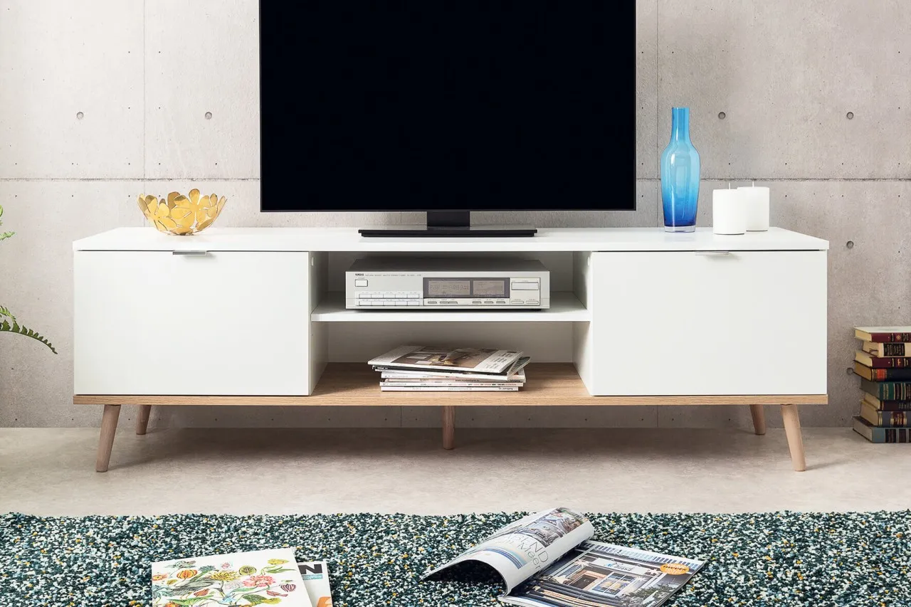 finori TV-Board Göteborg 160x40 cm weiß / Dekor Sonoma Eiche Fernsehschrank