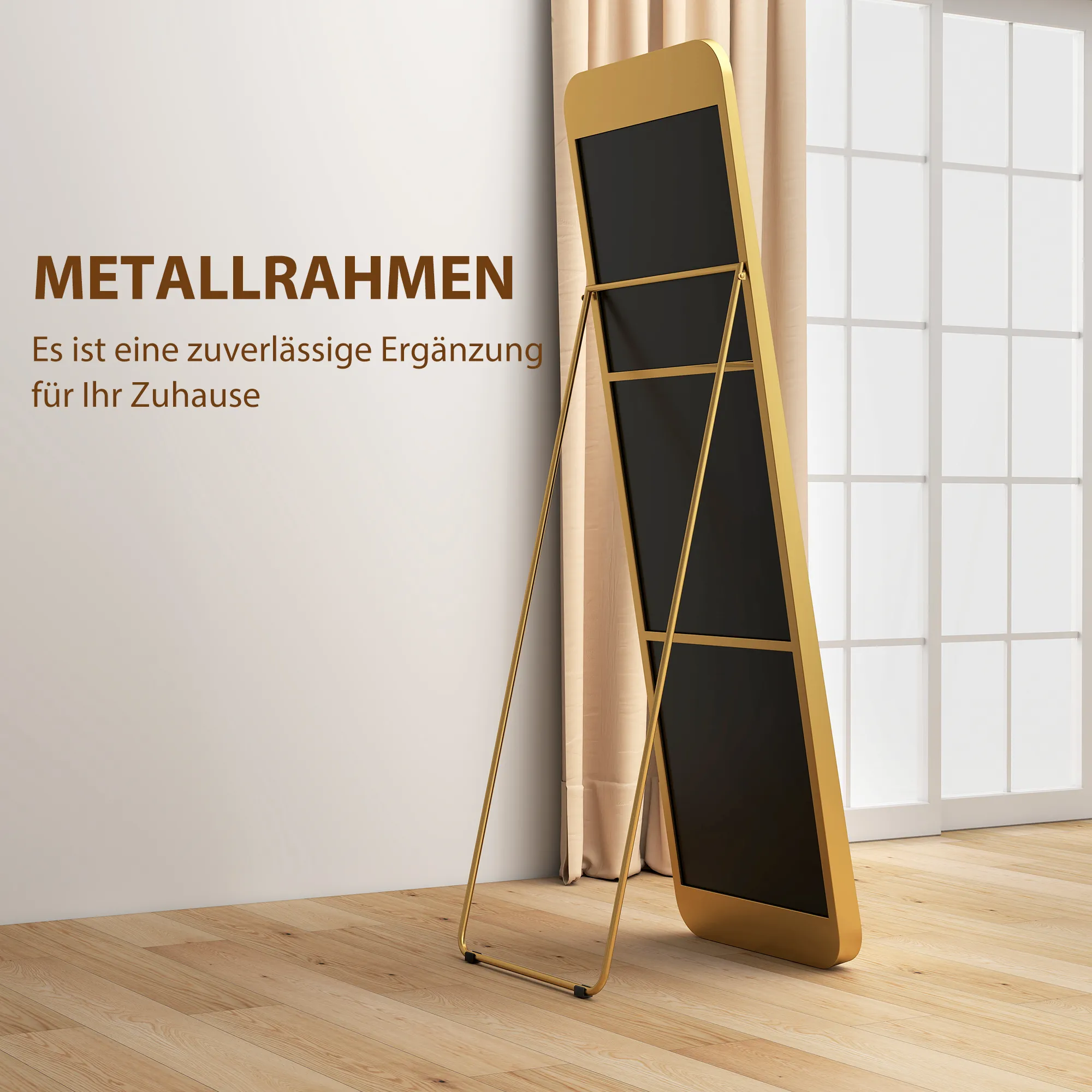 Ganzkörperspiegel, freistehend, neigbar, Metallrahmen, MDF, 160 x 50 cm, Goldfarben