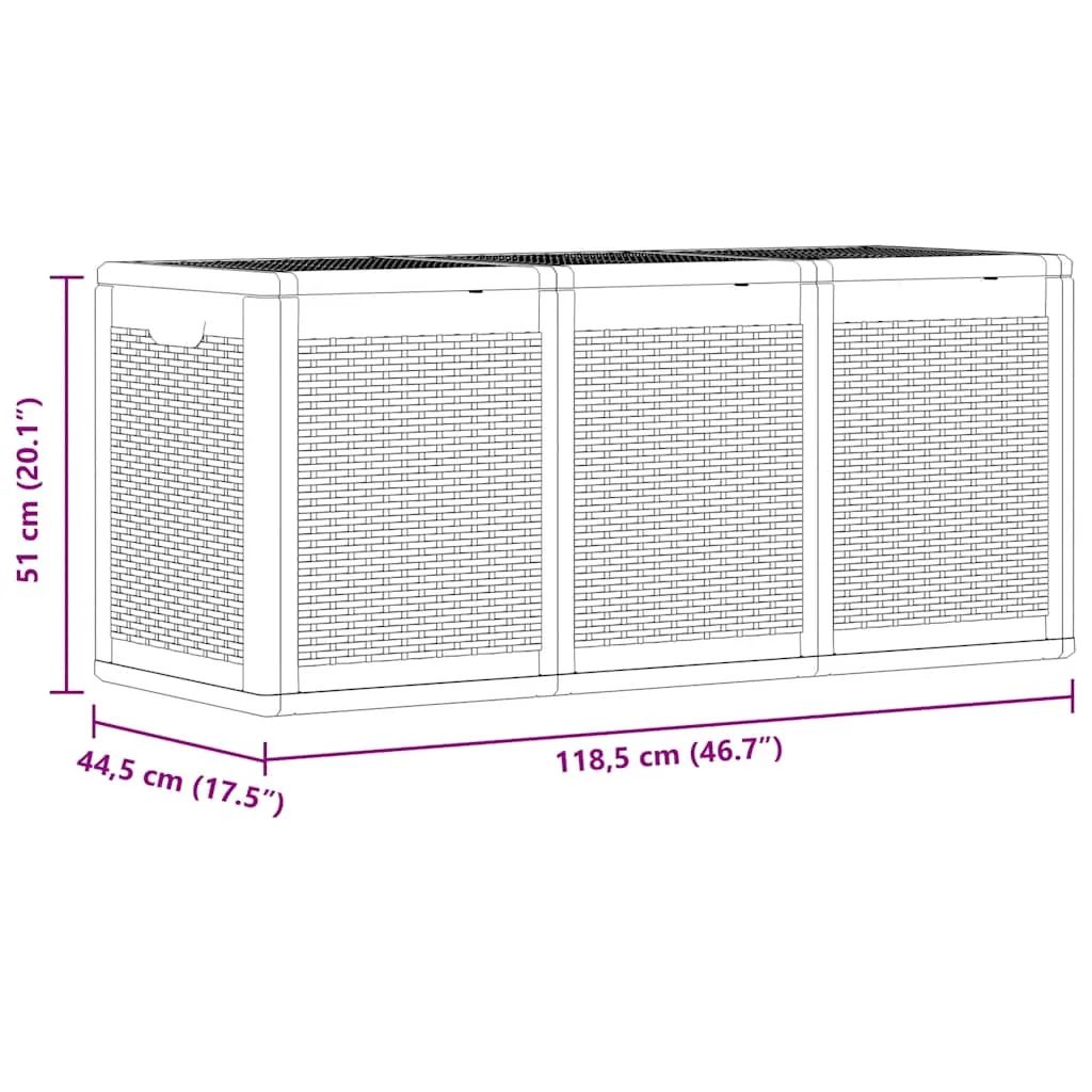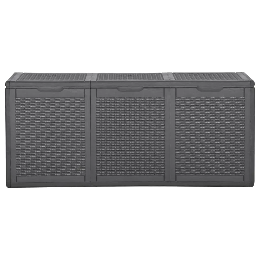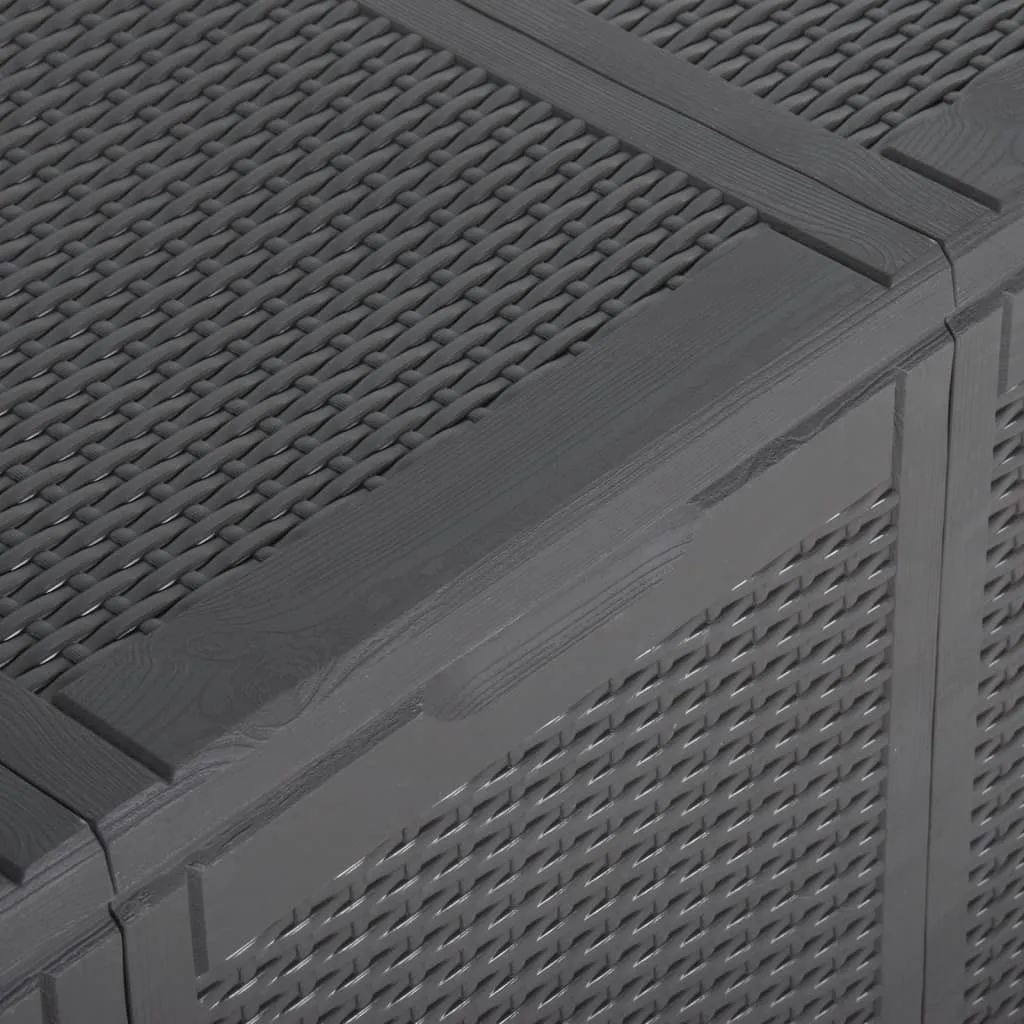 Diese schlichte Aufbewahrungsbox bietet eine hervorragende Lösung, um für Ordnung in Ihrem Garten, Innenhof oder auf Ihrer Terrasse zu sorgen. Die Aufbewahrungstruhe besteht zu 100 % aus PP-Material, wodurch sie witterungsbeständig, UV-beständig, leicht und einfach zu transportieren ist. Die Garten-Aufbewahrungsbox verfügt über ein dezentes und dennoch zeitloses Design und fügt sich perfekt in Ihre Innen- und Außeneinrichtung ein. Darüber hinaus bietet die Gartenbox reichlich Stauraum, um Kissen, Polster und andere Haushalts- oder Gartengegenstände griffbereit zu lagern. Hinweis: Um die Lebensdauer Ihrer Gartenmöbel zu verlängern, empfehlen wir Ihnen, diese regelmäßig zu reinigen und im Freien vor Niederschlägen oder starken Sonnenstrahlen zu schützen.Reinigung: Verwenden Sie eine milde Seifenlösung.Lagerung:Wenn möglich, an einem kühlen, trockenen Ort im Innenbereich lagern. Wenn das Produkt im Freien gelagert wird, schützen Sie es mit einer wasserdichten Abdeckung. Wischen und trocknen Sie das überschüssige Wasser oder den Schnee, nach Regen oder Schneefall. Sorgen Sie für eine ausreichende Luftzirkulation, um feuchtigkeitsbedingte Schäden zu vermeiden.