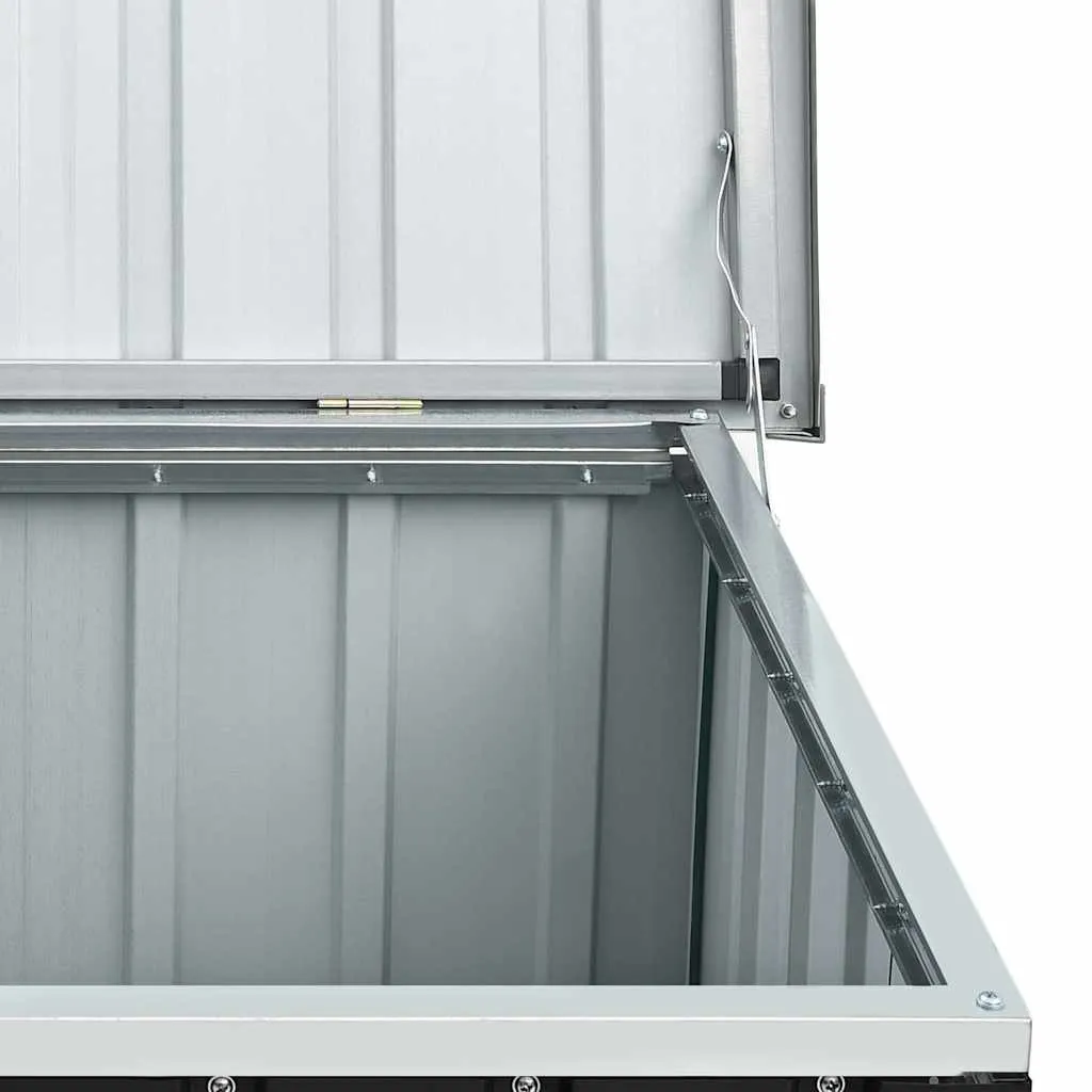 Gefertigt aus widerstandsfähigem, verzinktem Stahl und Kunststoff, ist die Box sowohl für den Innen- als auch den Außenbereich bestens geeignet. Das schlichte, zeitlose Design fügt sich harmonisch in jede Umgebung ein und verleiht Ihrem Außenbereich eine gepflegte Optik.