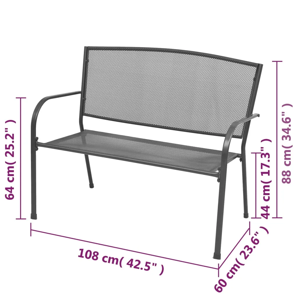 Gartenbank 108 cm Stahl und Drahtgitter Anthrazit