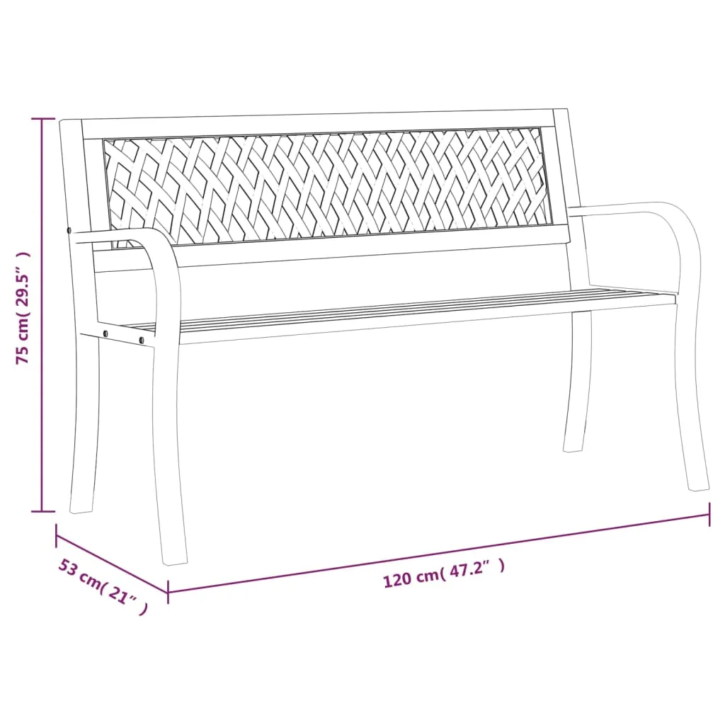 Diese Gartenbank wird mit ihrem dezenten und zeitlosen Design jedem Außenbereich, sei es im Garten oder auf der Terrasse, einen Hauch von Stil hinzufügen. Langlebiges Material: Pulverbeschichteter Stahl ist ein außergewöhnlich hartes und starkes Material. Er bietet Robustheit und Stabilität. Die Pulverbeschichtung bildet eine Schutzschicht gegen Rost, Korrosion und Verschleiß.Bequemes Sitzerlebnis: Mit einer Rückenlehne mit Gittermuster und Armlehnen versehen, bietet die Gartenbank höchsten Komfort.