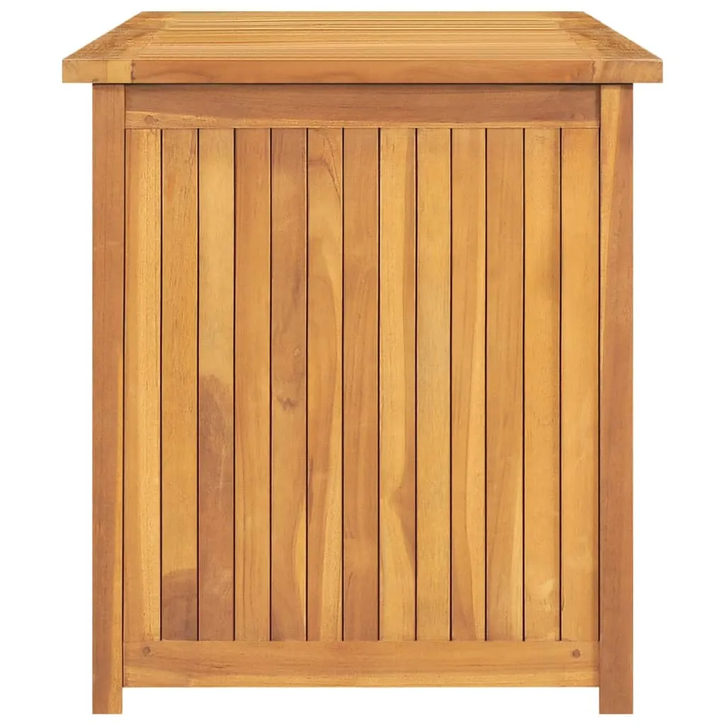 Mit einem leicht zu öffnenden Deckel bietet diese Gartenbox viel Platz zum Verstauen von Werkzeugen und anderen Utensilien. Erstklassiges Material: Massives Teakholz ist ein wunderschönes Naturmaterial. Es wurde abgelagert, getrocknet und anschließend fein geschliffen, um eine sehr glatte Optik und Haptik zu erhalten. Teakholz ist sehr stark und witterungsbeständig.Geräumig: Die geräumige Gartentruhe kann zur Aufbewahrung von Auflagen, Decken, Kissen, Gartengeräten und anderen Dingen verwendet werden. Der Inhalt bleibt geschützt und ordentlich aufbewahrt.Ausstattung: Im Inneren befindet sich eine PE-Auskleidung. Sie ist sehr nützlich, um den Inhalt trocken und sauber zu halten.Anwendung: Diese Gartenbox eignet sich ideal für den Einsatz im Garten, auf der Terrasse, im Geräteschuppen oder in der Garage. Hinweis:Um die Lebensdauer deiner Gartenmöbel zu verlängern, empfehlen wir dir, sie mit einer wasserdichten Hülle zu schützen.