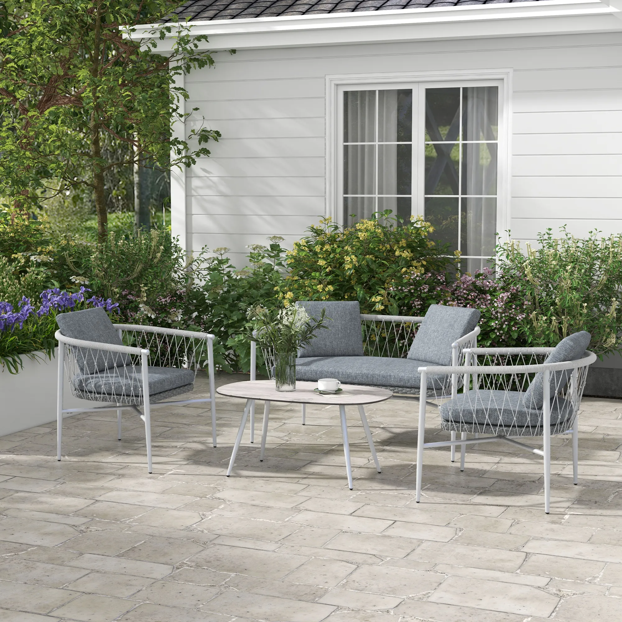 - Stabiler Stahlrahmen und wasserbeständiges PE-Rattan und Seildekor