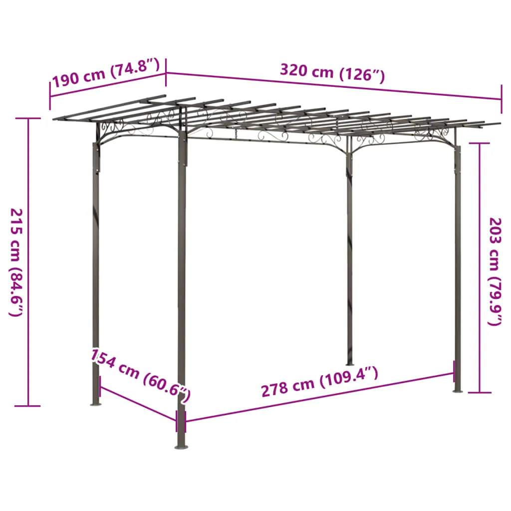 Gartenlaube Stahl 190x320 cm Anthrazit