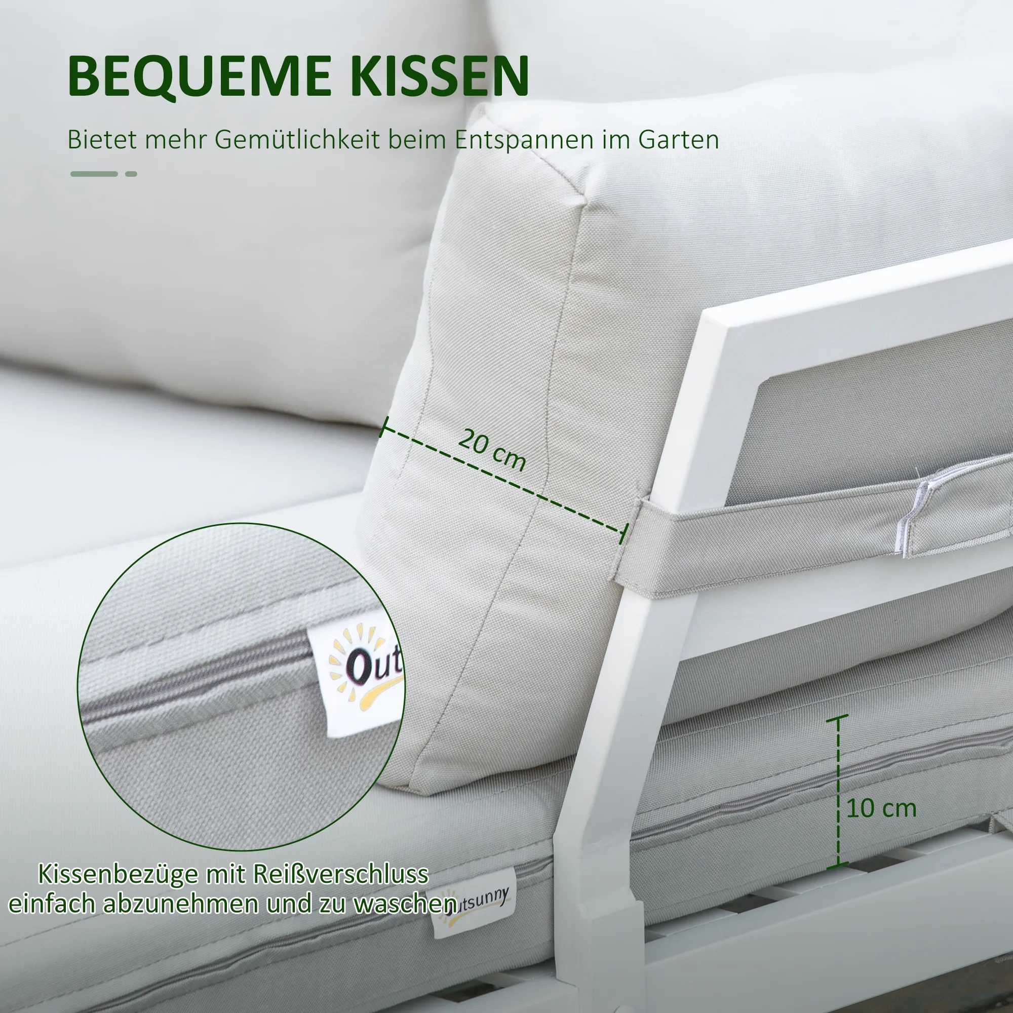 Gartenmöbel-Set für 3 Personen mit Beistelltisch Sofa mit Kissen L-Form Outdoor Aluminium Cremeweiß