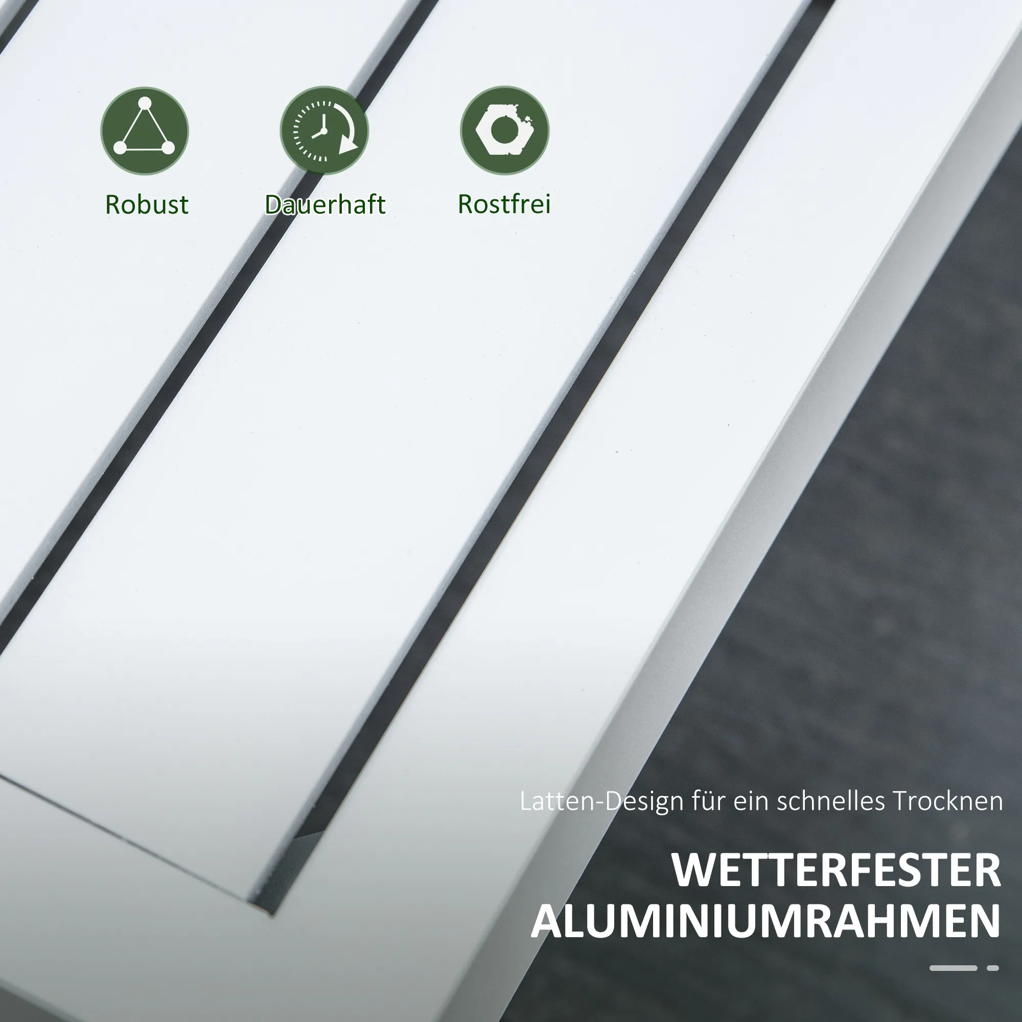 - Tischplatte und Sitzfläche mit Lamellen verhindern Wasseransammlungen