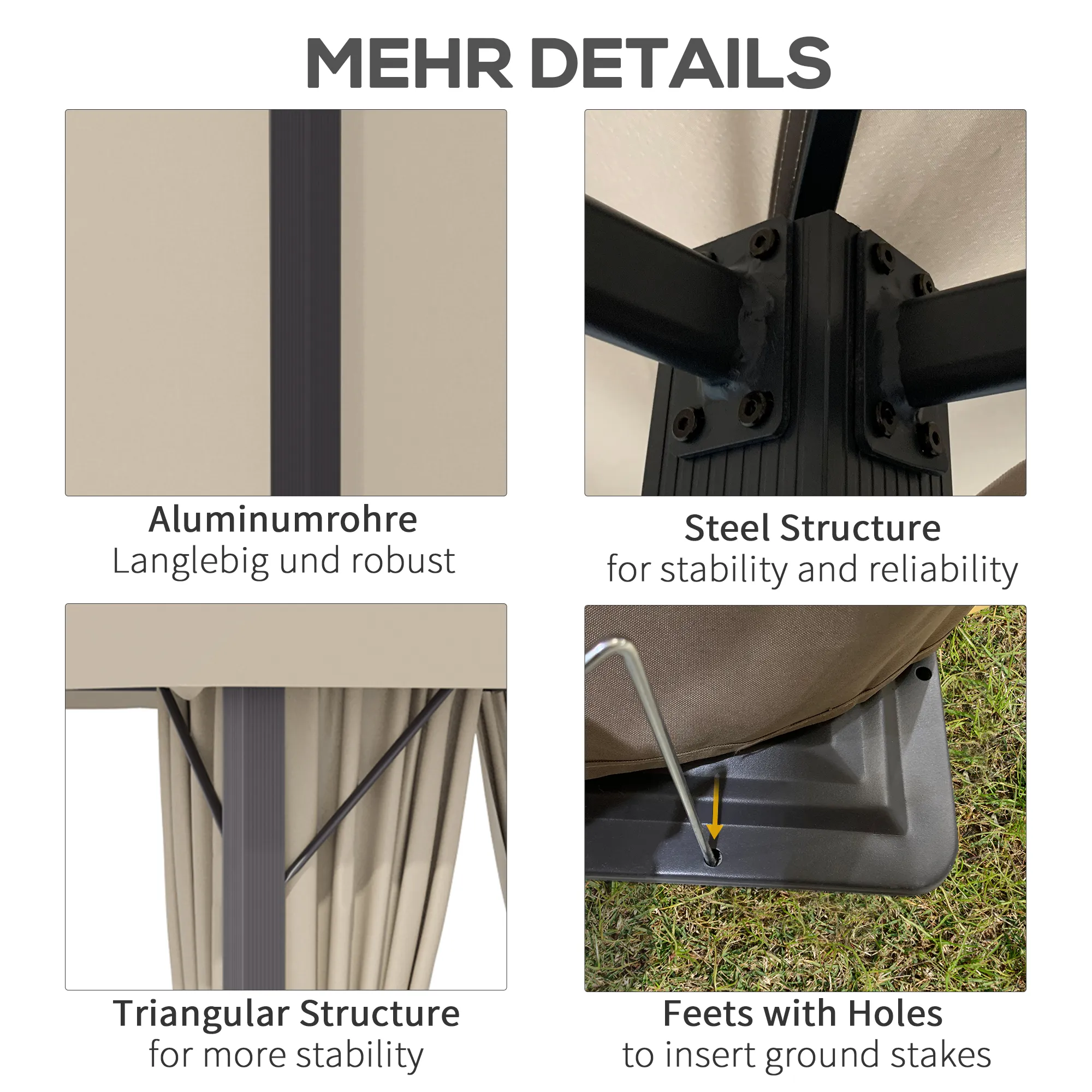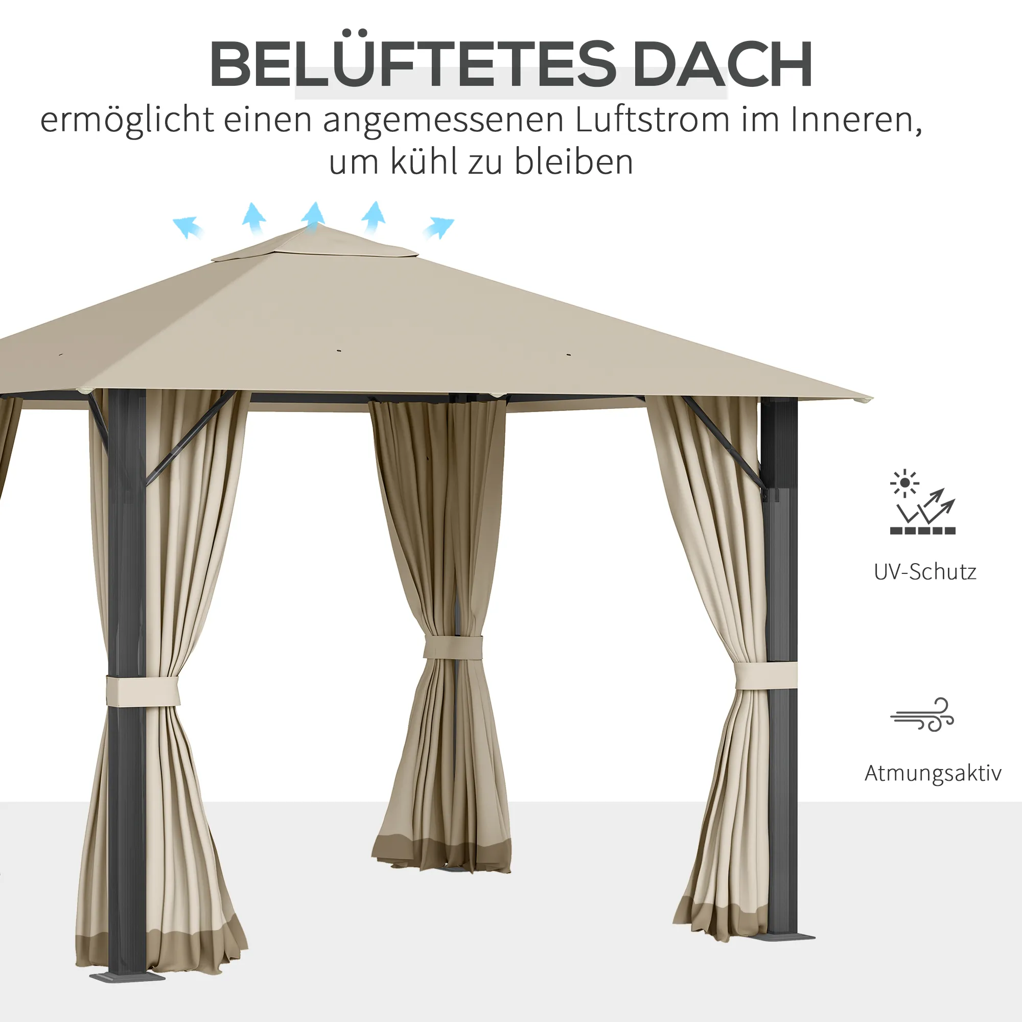 Gartenpavillon Pavillon 3 x 3 m Gartenzelt Dach mit Belüftungslöcher Festzelt Partyzelt mit 4 x Seitenteile wetterfest Aluminium Polyester khaki