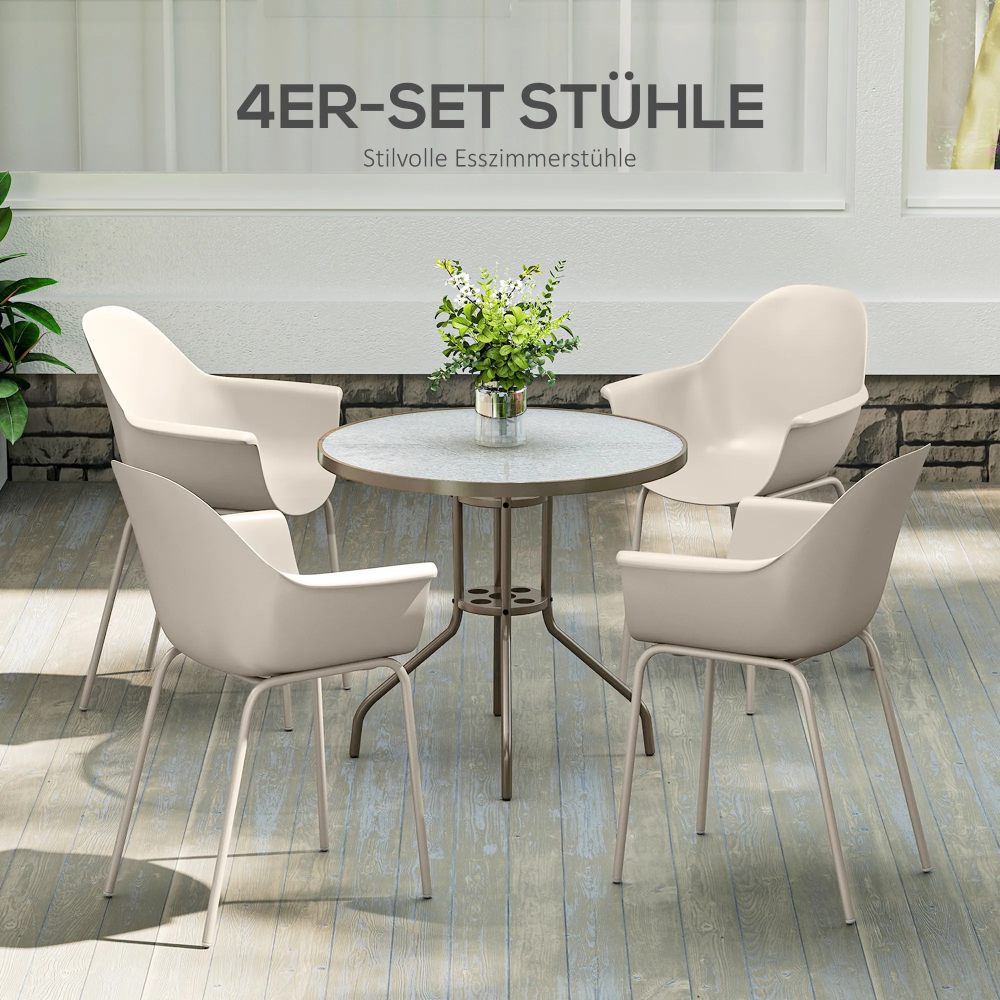 Genieße die Zeit im Freien mit diesem Set aus vier Gartenstühlen. Die ergonomische Form mit hoher Rückenlehne und Armlehnen sorgt für optimalen Komfort und Unterstützung. Hergestellt aus hochwertigem Kunststoff-Material, bieten diese Stühle ein angenehmes Sitzerlebnis. Lass dich von der Qualität unserer Metall-Gartenstühle überzeugen und schaffe dir eine ruhige Oase im Freien.