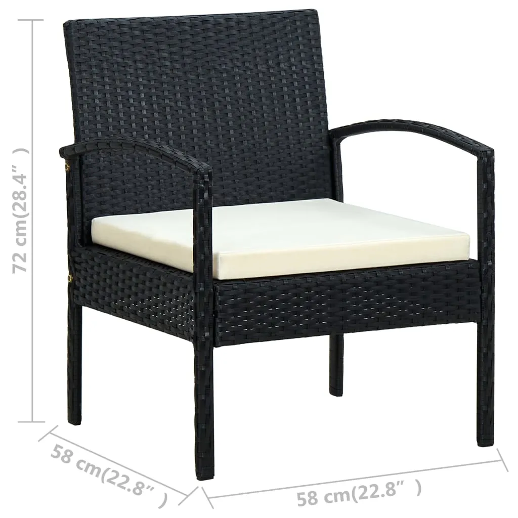 Gartenstuhl mit Kissen Poly Rattan Schwarz
