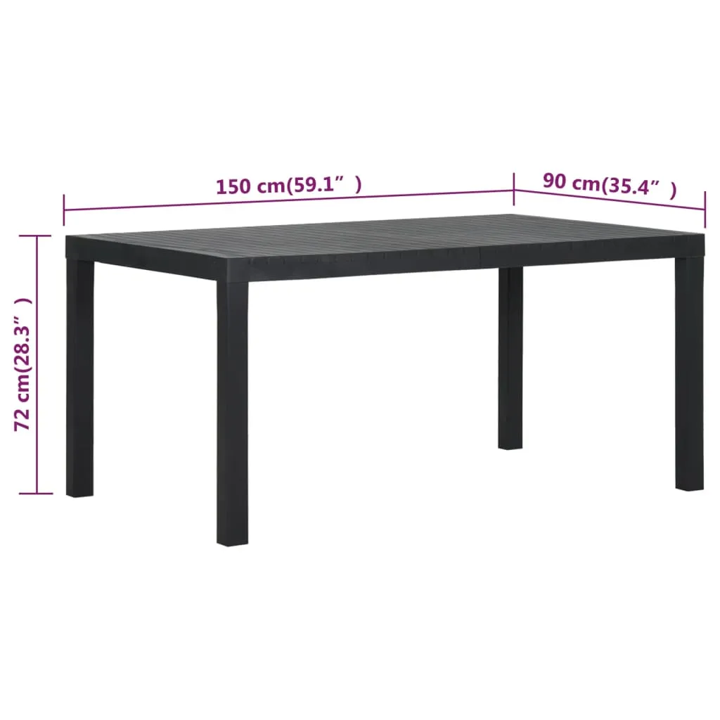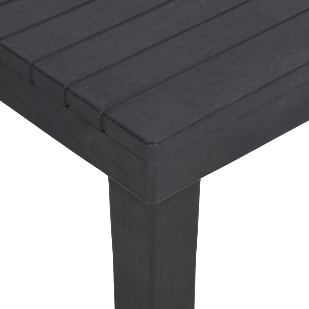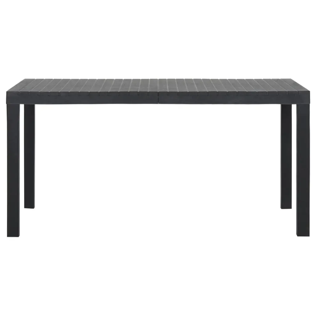 Dieser Gartentisch kombiniert Stil und Funktionalität und wird sicherlich das Herzstück Ihres Gartens, Ihrer Terrasse oder jedes anderen Outdoor-Wohnbereichs sein. Das Lattendesign verleiht Ihrem Außenbereich einen Hauch von modernem Stil. Zudem ist der Outdoor-Tisch aus Polypropylen gefertigt, wodurch er leicht zu reinigen und für den Außenbereich geeignet ist. Dank ihrer Leichtbauweise können alle Möbelstücke einfach umgestellt werden. Hinweis: Um die Lebensdauer deiner Gartenmöbel zu verlängern, empfehlen wir dir, sie mit einer wasserdichten Abdeckung zu schützen.