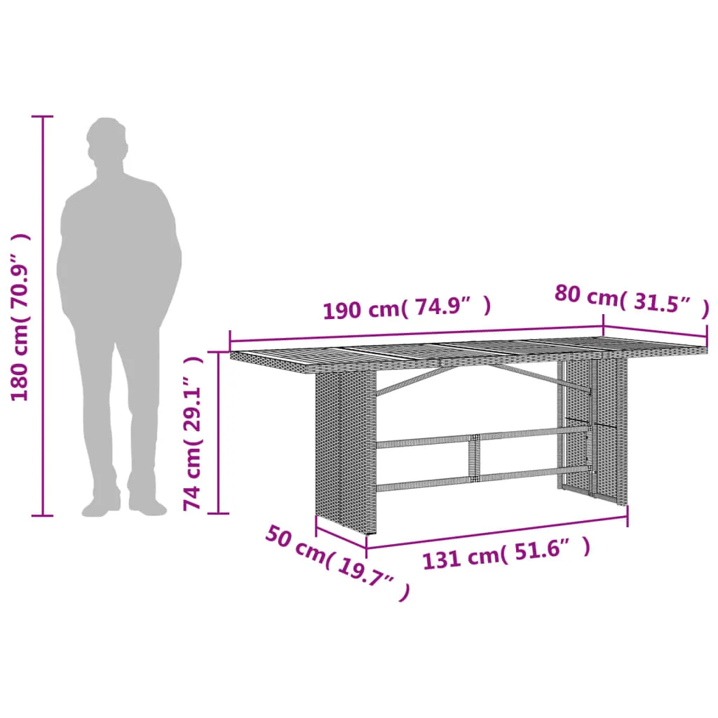 Gartentisch mit Akazienholz-Platte 190x80x74 cm Poly Rattan