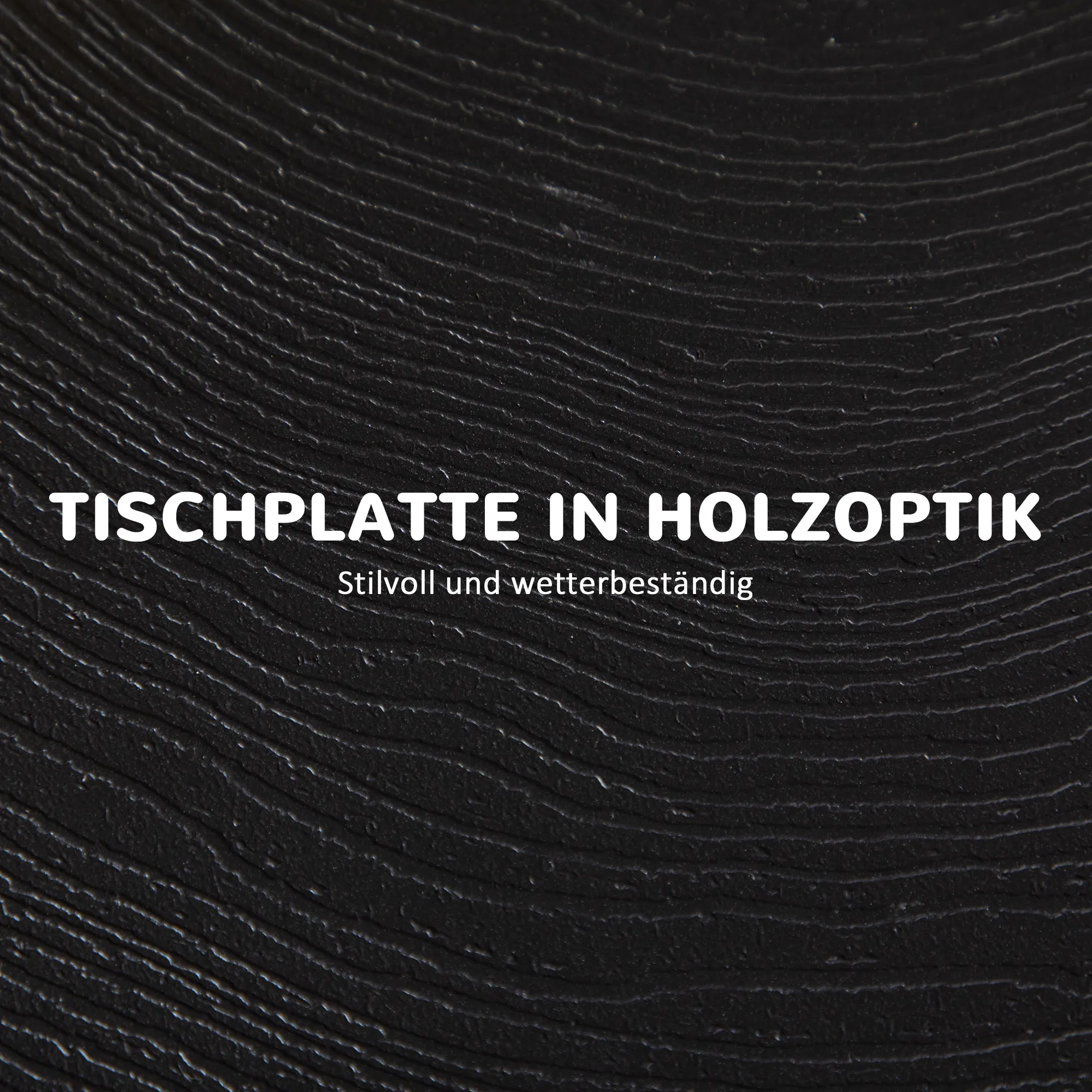 - Robuste Kunststofftischplatte in Holzoptik ist wetterbeständig und außerordentlich dekorativ