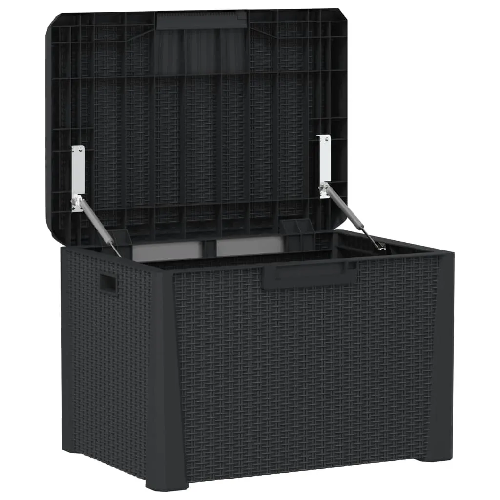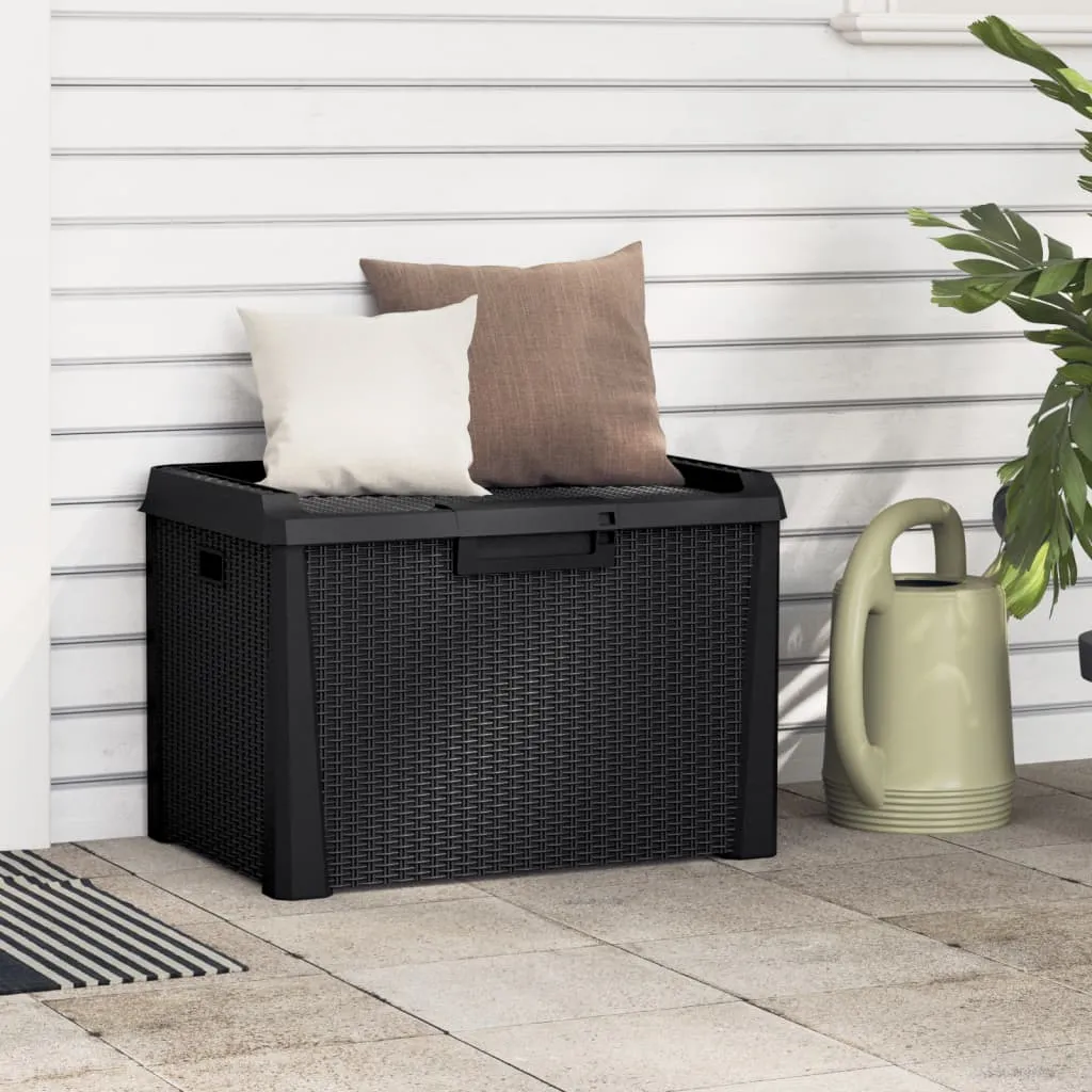 Diese Gartentruhe in Rattan-Optik eignet sich ideal, um Kissen, Auflagen, Decken, Spielzeuge und andere Sachen im Garten oder auf der Terrasse aufzubewahren. Langlebiges Material: Polypropylen (PP) ist ein beliebter Kunststoff, der bei der Herstellung von Gartenmöbeln sehr häufig verwendet wird. Es ist leicht, robust und stoßfest. Zudem ist diese Aufbewahrungsbox auch witterungs-, UV-beständig und pflegeleicht. Viel Stauraum: Mit einem Fassungsvermögen von 125 L bietet diese Outdoor-Truhe reichlich Stauraum für Kissen, Auflagen, Decken, Gartengeräte und andere Sachen, um für Ordnung in deinem Garten zu sorgen! Vielseitig einsetzbar: Mit einer Tragfähigkeit von 180 kg lässt sich diese Truhe nicht nur als Aufbewahrungsbox, sondern such als Sitzgelegenheit in deinem Garten, Hinterhof bzw. auf deiner Terrasse oder Veranda einsetzen! Gasdruckfeder: Dank der Gasdruckfeder lässt sich die Truhe mühelos vollständig öffnen und langsam schließen, ohne sich die Finger dabei zu quetschen. Abschließbar: Diese Auflagenbox lässt sich bei Bedarf abschließen, um zusätzliche Sicherheit zu bieten (Schloss ist nicht im Lieferumfang enthalten). Gut zu wissen:Wir empfehlen dir, deine Gartenmöbel mit einer wasserdichten Hülle zu schützen, um lange Zeit eine ansprechende Optik aufzuweisen.