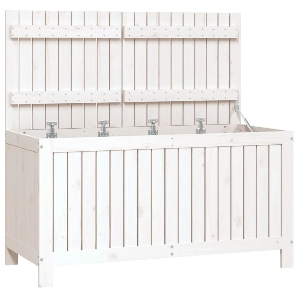 Gartentruhe aus massivem Kiefernholz 121 x 55 x 64 cm Weiß