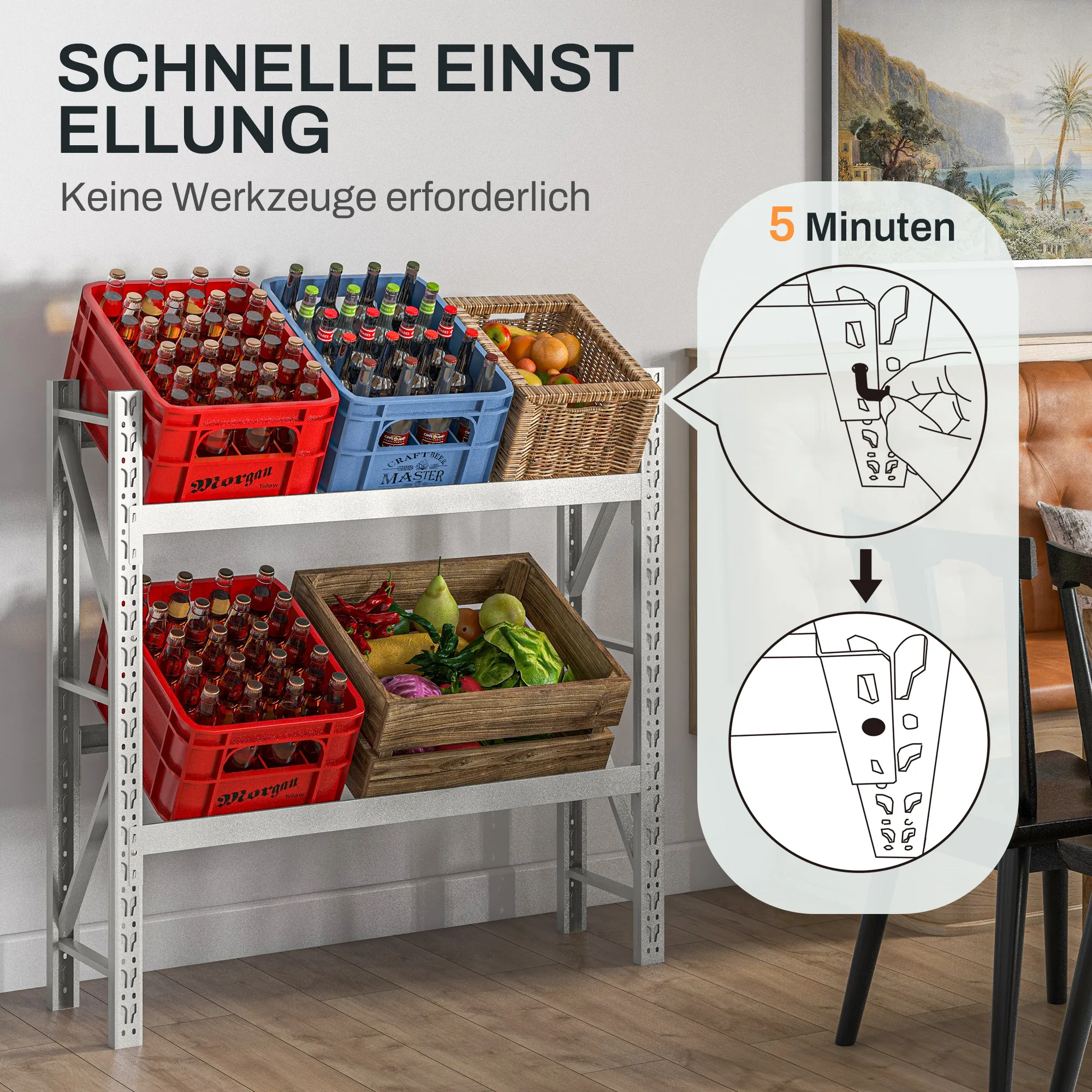 Entdecken Sie die einfache Art der Organisation mit dem Regal für Getränkekisten! Dieser zweistufige Kistenständer bietet Platz für bis zu 6 Getränkekisten und sorgt dafür, dass Ihre Getränke stets griffbereit sind, ganz ohne Bücken. Doch das ist nicht alles: Versetzen Sie das Regal, um Obst, Gemüse oder sogar Wäschekörbe zu verstauen. Eine clevere und vielseitige Lösung, um Ihren Raum sauber und ordentlich zu halten!