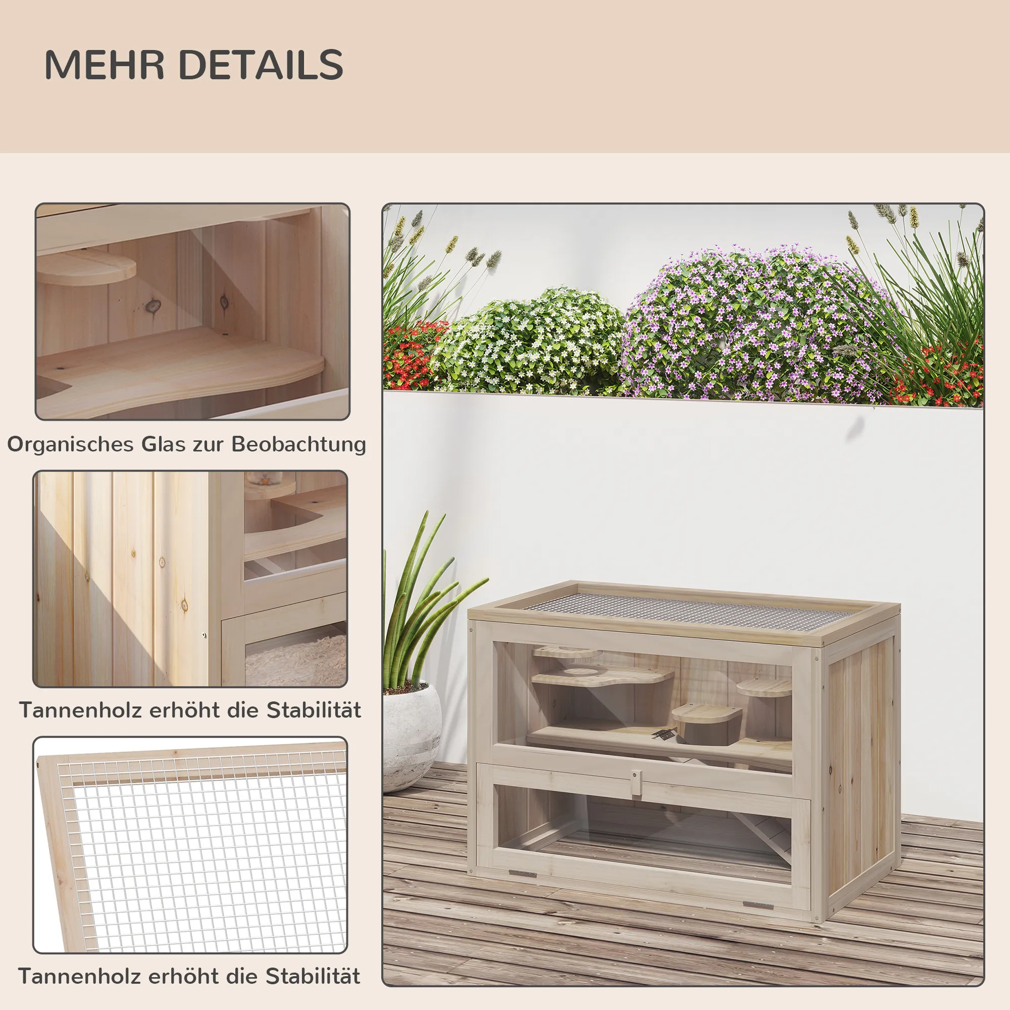 - âFrontseiten aus Plexiglas, damit Kleintier kann beobachtet werden