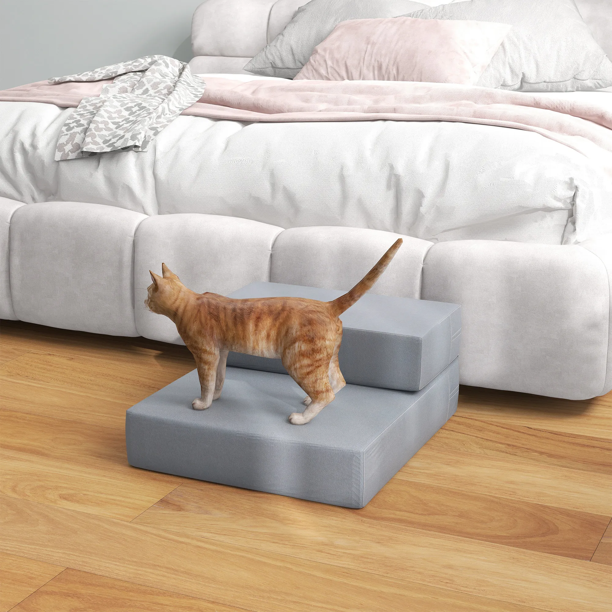 Haustiertreppe Tierunterlage 2 Stufen Klappbar bis 7 kg Hundetreppe Treppe Unterlage für Katzen und Hunde Grau L45 x B39 x H20 cm