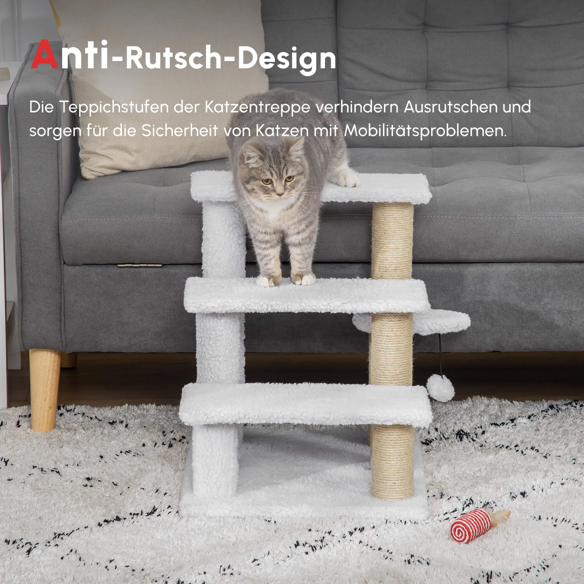 Entdecke die Haustiertreppe, die speziell für ältere Haustiere entwickelt wurde, um ihre Mobilität und Gelenkgesundheit zu unterstützen. Mit vier stabilen Stufen erleichtert sie das Erreichen höherer Plätze, während der integrierte Spielball für zusätzliche Unterhaltung sorgt.