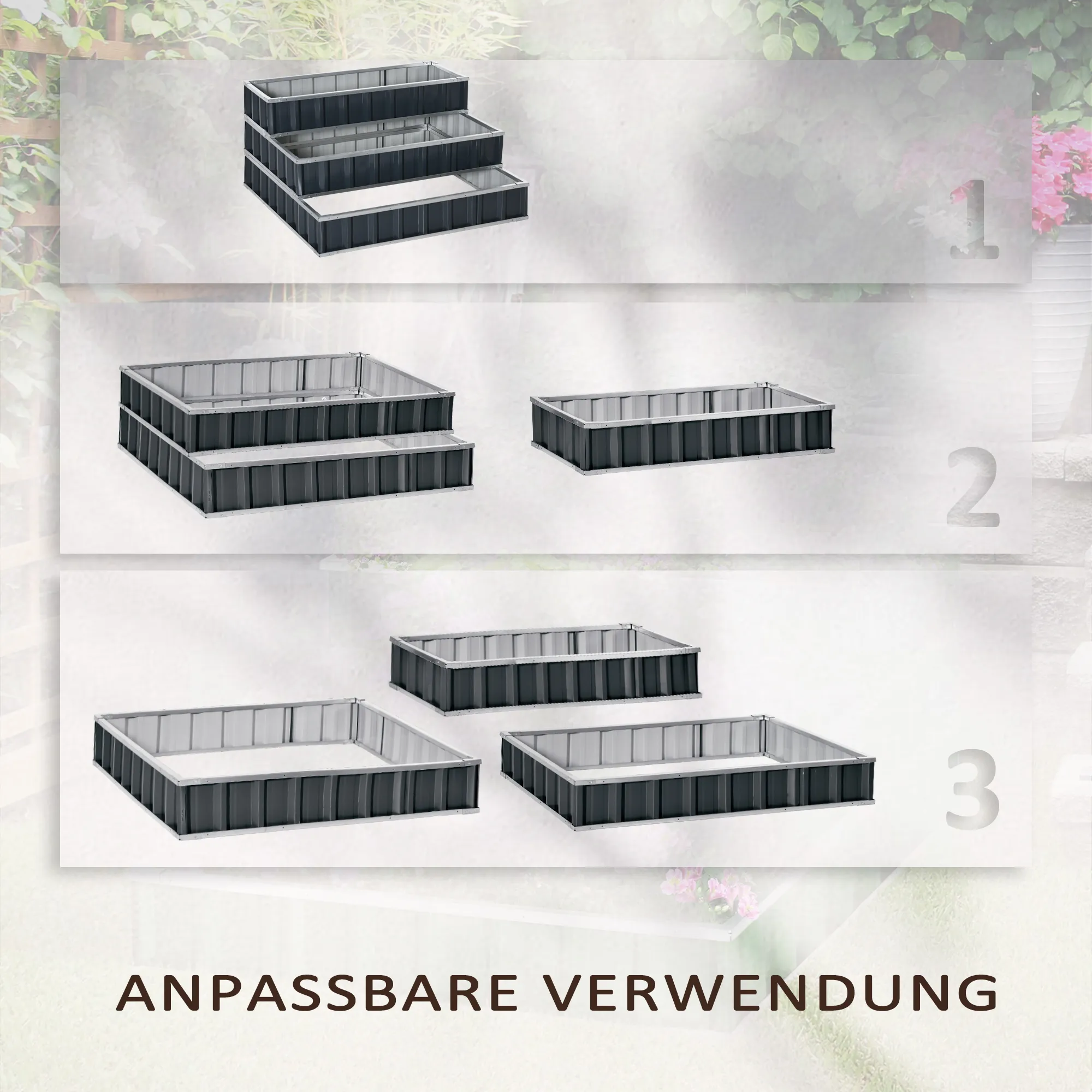 - 3 separate Pflanzbeete oder 1 zweistöckiges Beet mit 1 separaten Pflanzkasten