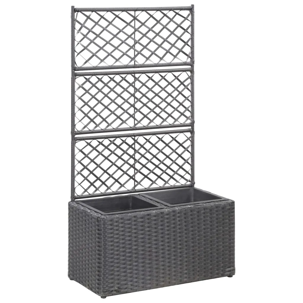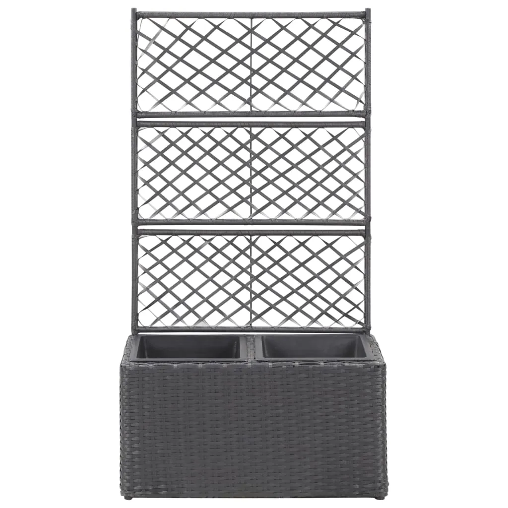 Hochbeet mit Rankgitter 2 Töpfe 58×30×107cm Poly Rattan Schwarz
