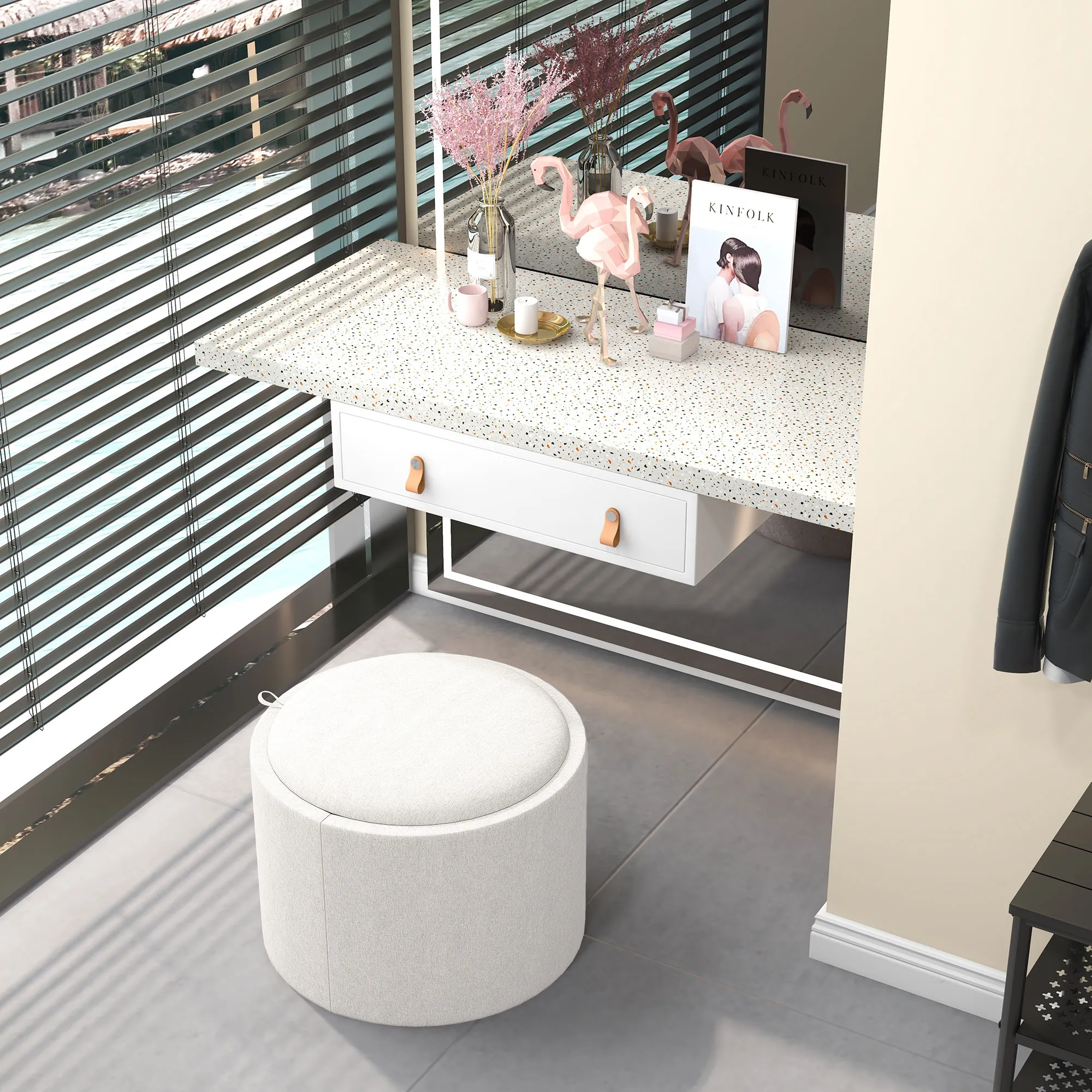 - Stauraum unter der Sitzfläche des Aufbewahrungshockers für Dinge, die sonst keinen Platz finden