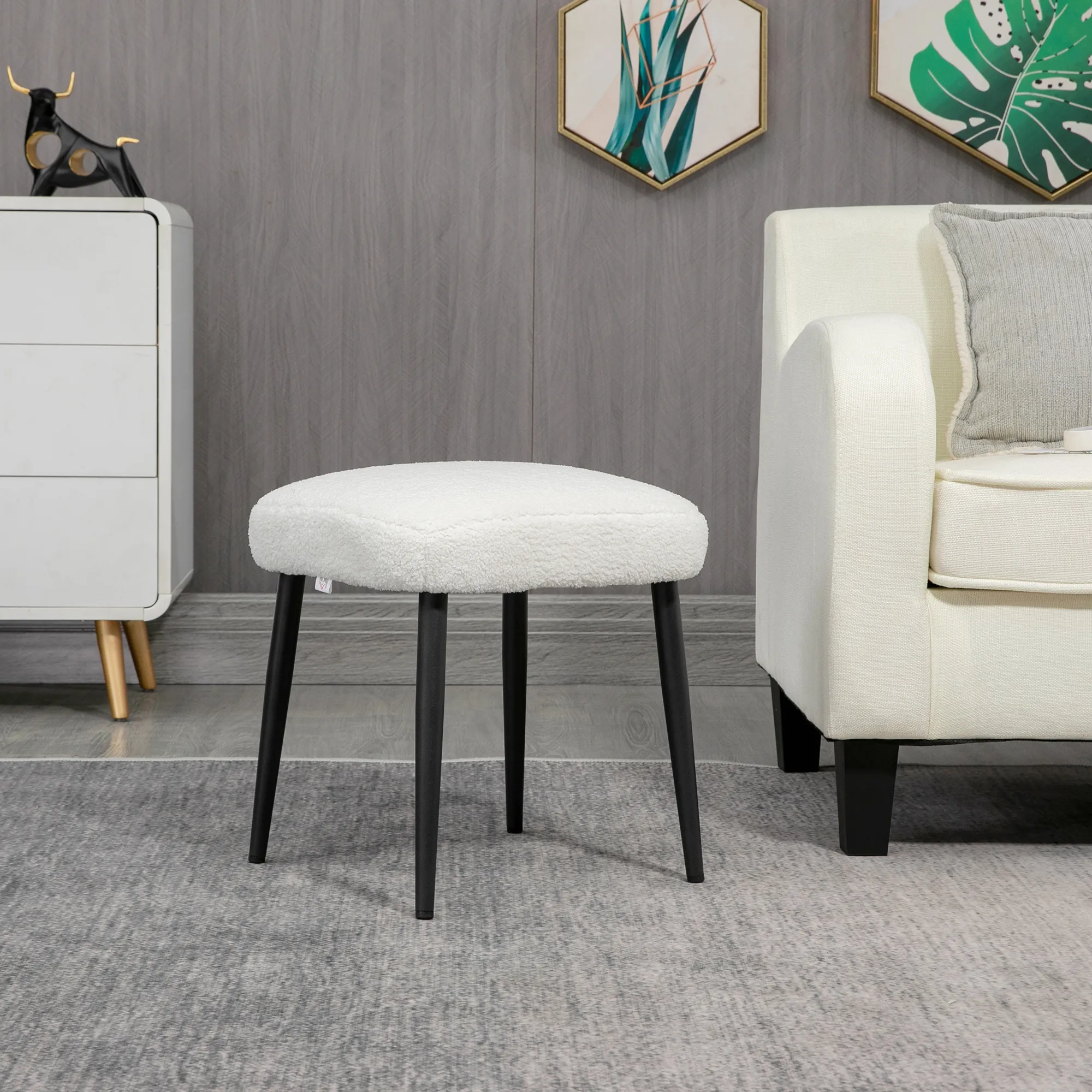 Hocker, Sitzhocker, Kaschmir-Optik, Fußhocker, Creme-Weiß