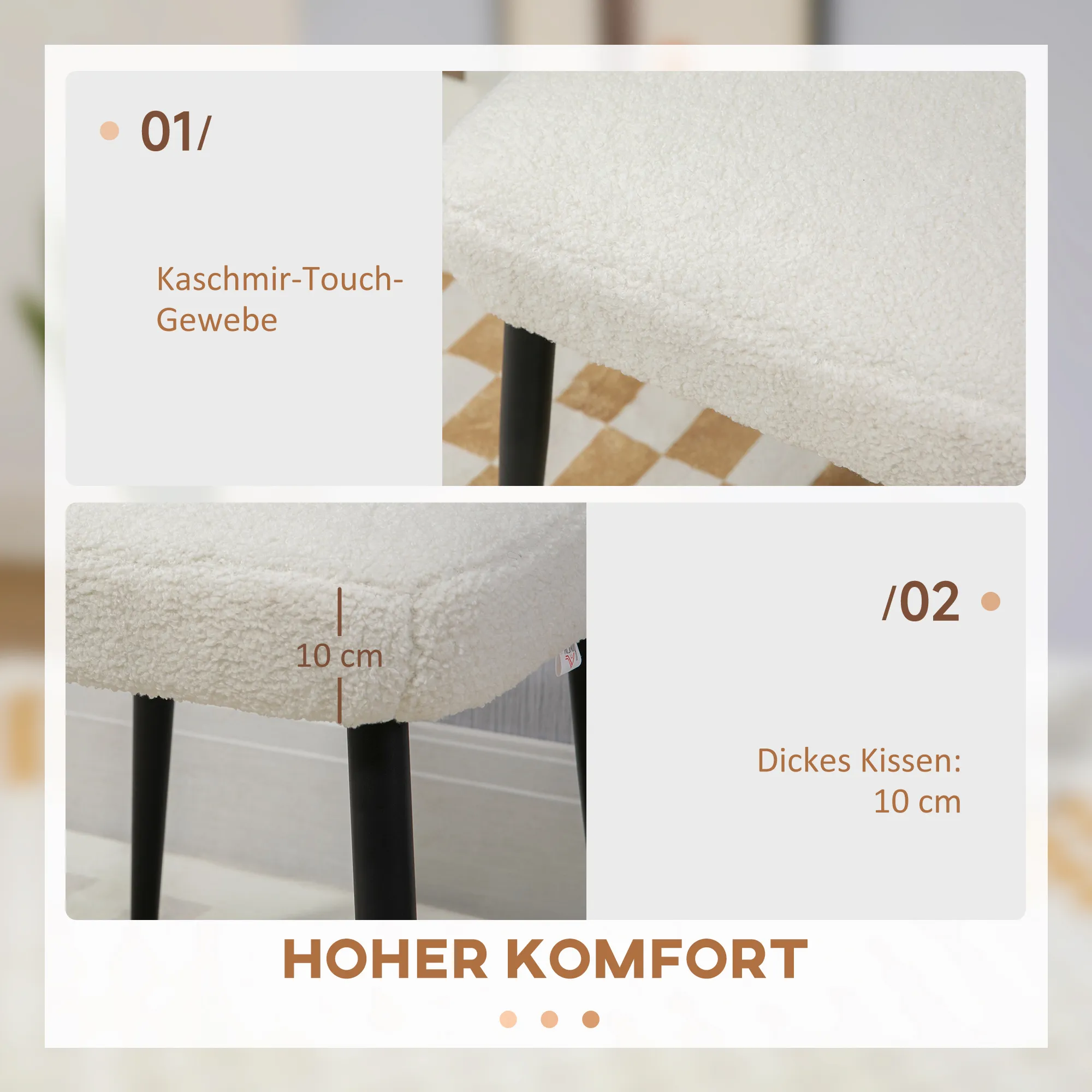 - Der gepolsterte Sitz und der weiche Stoff des Sitzhockers in Kaschmir-Optik bieten außergewöhnlichen Komfort und Entspannung