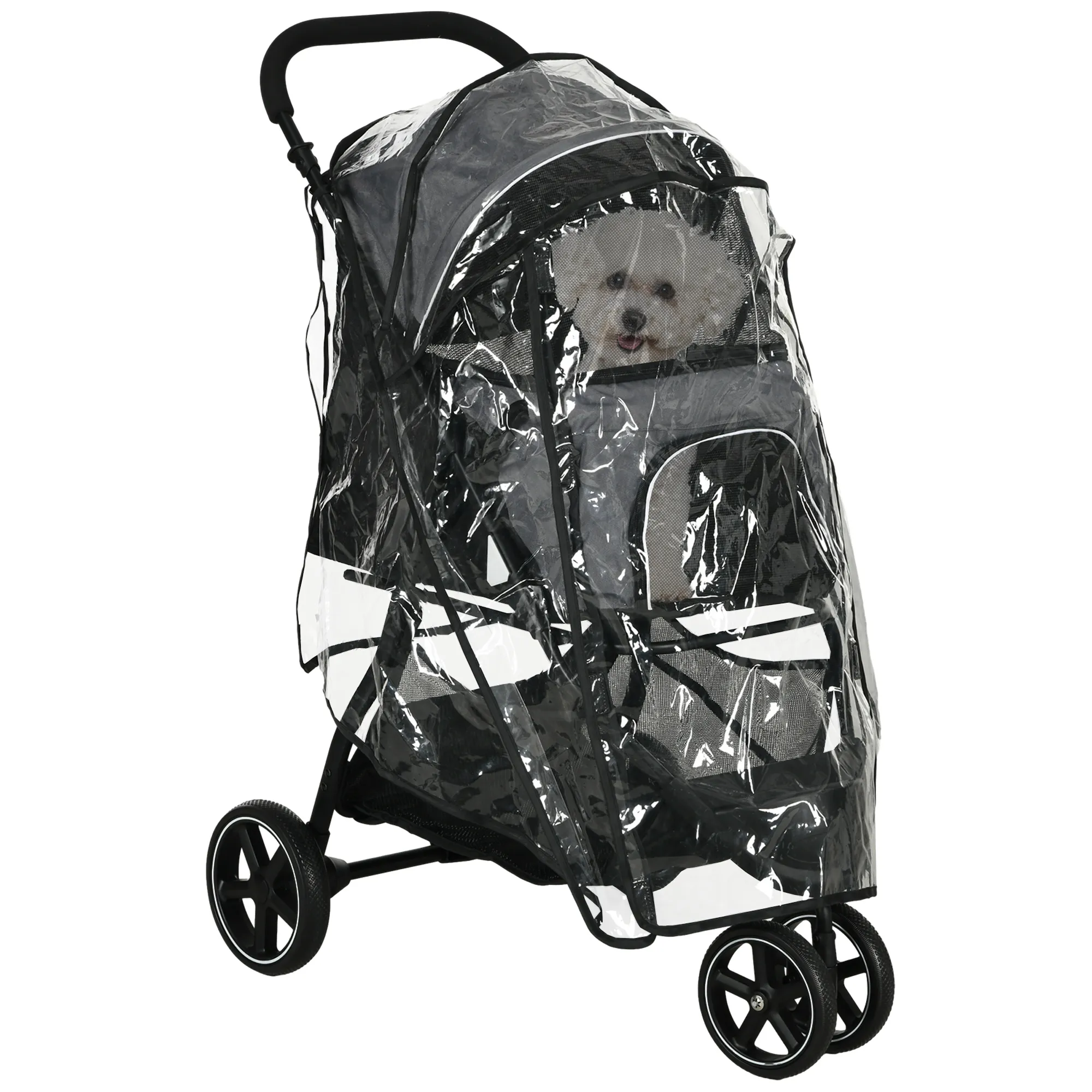 Hundebuggy Haustierwagen bis 10kg klappbar Regenschutz 2 Sicherheitsleinen 83cm x 55cm x 101cm Grau + Schwarz