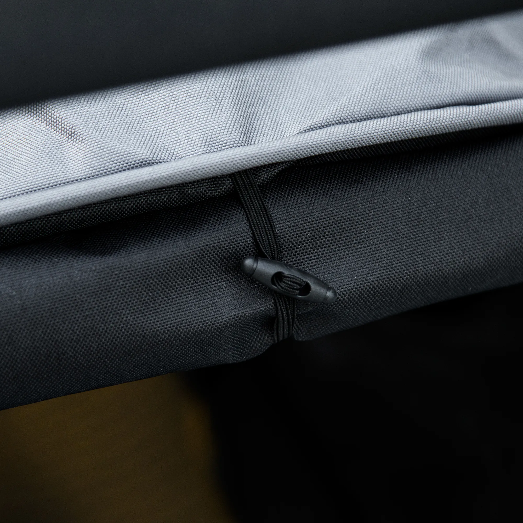 - Ein in drei Positionen verstellbares Verdeck, Türen mit Reißverschluss und ein Netzfenster
