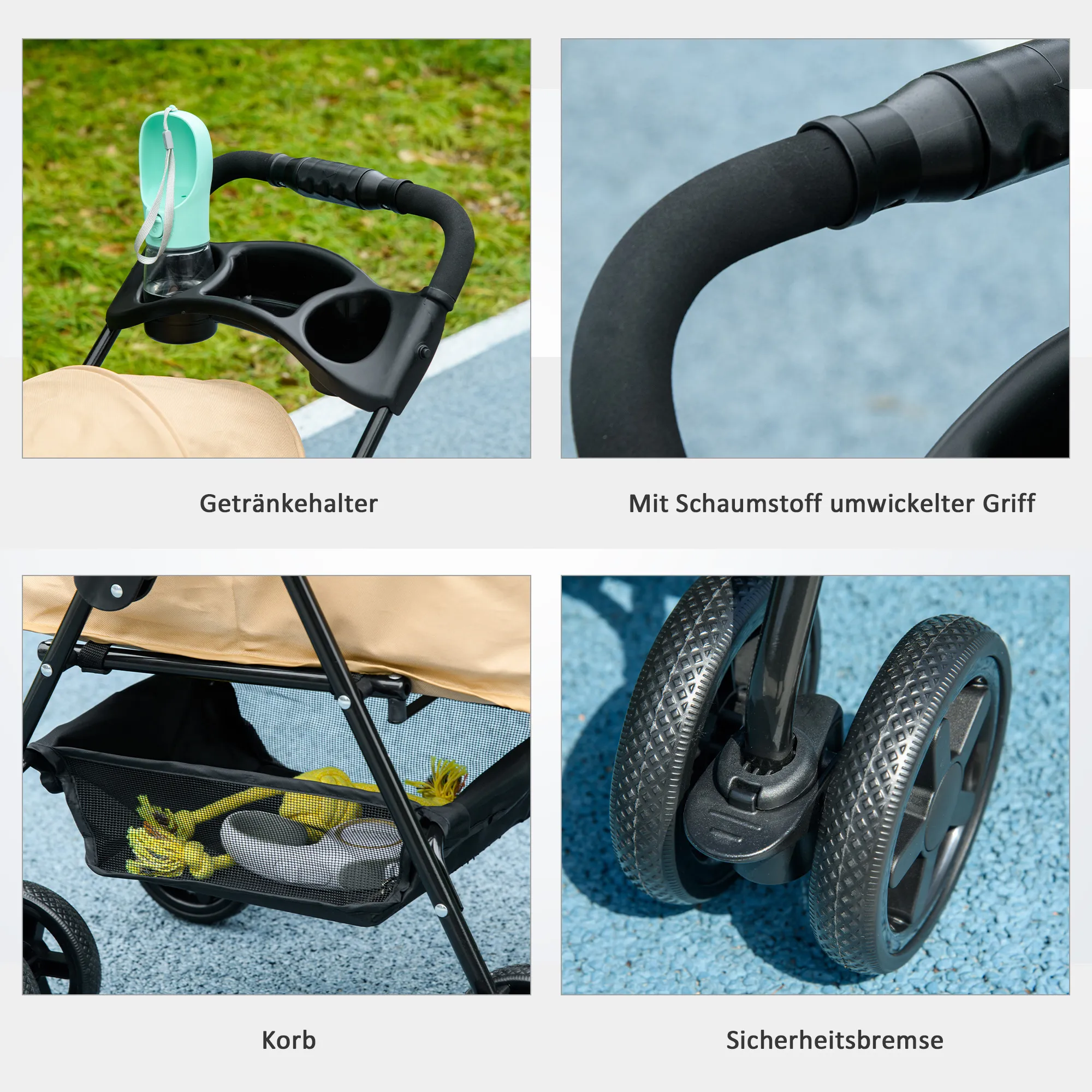 Hundewagen Hundebuggy, klappbar, 2 Sicherheitsleinen, 2 Becherhalter, 67 x 45 x 96 cm, Khaki