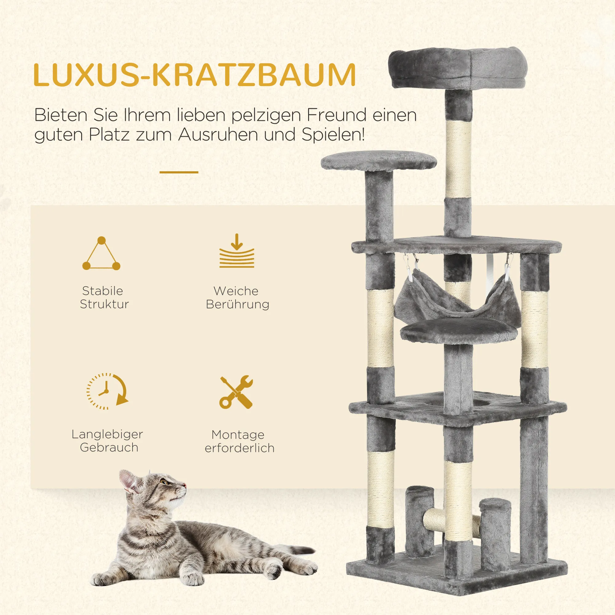 - Plüsch-Elemente machen den Kratzbaum für Ihre Katze noch gemütlicher