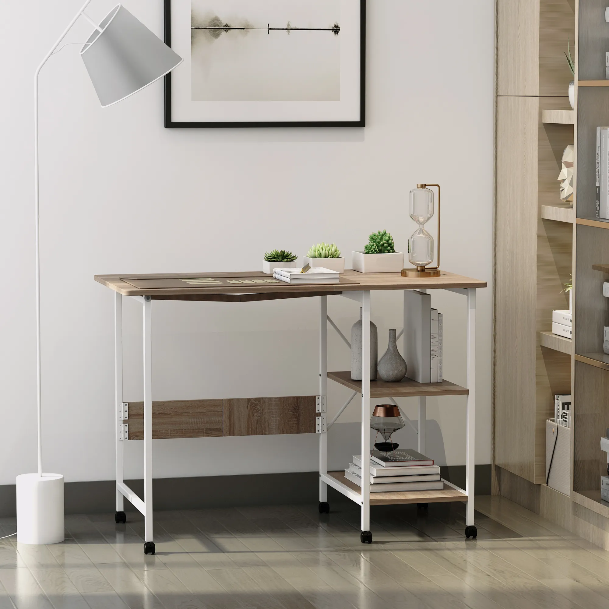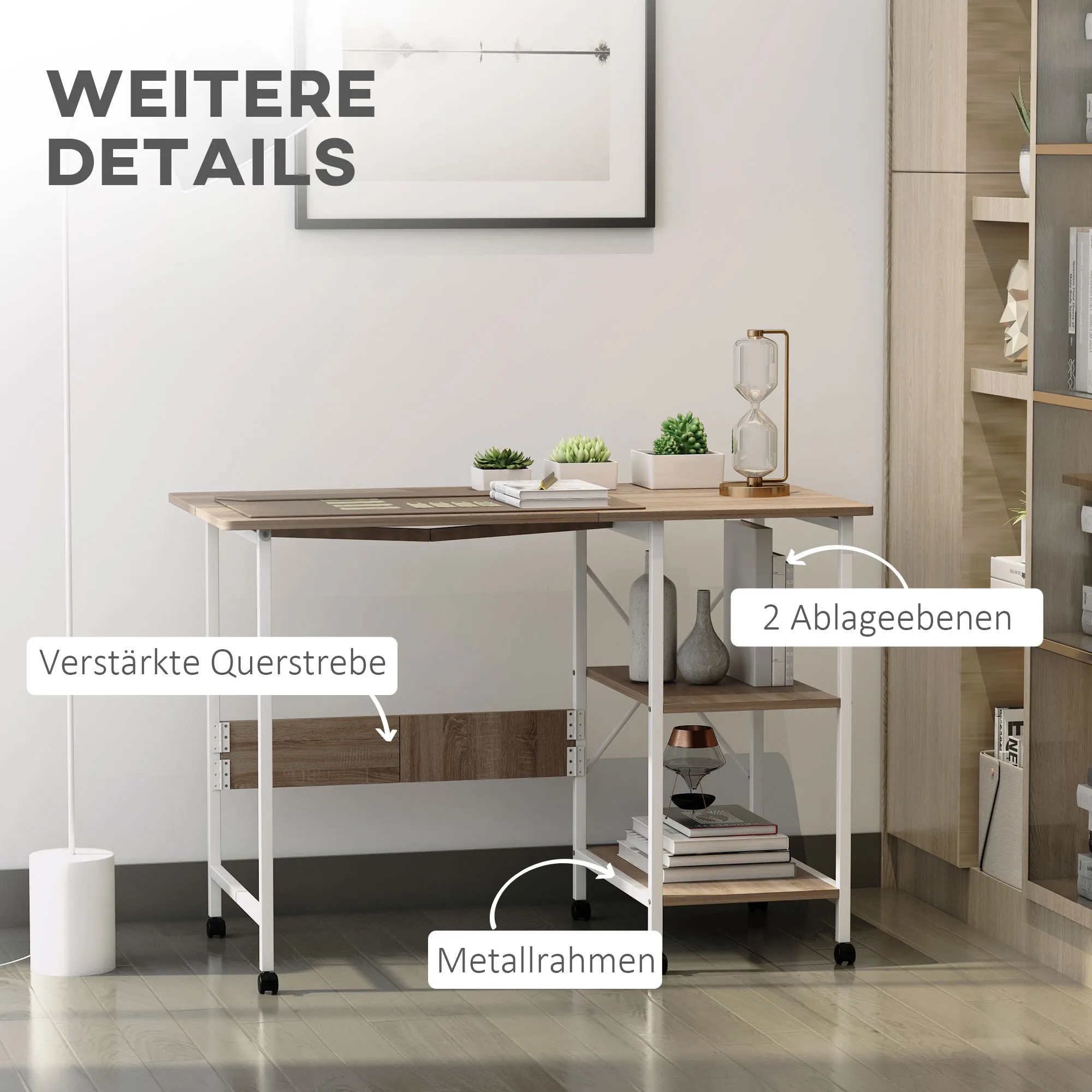 Klapptisch Schreibtisch Beistelltisch Bürotisch Mobiler Computertisch mit Rollen MDF Natur 107 x 55 x 76 cm