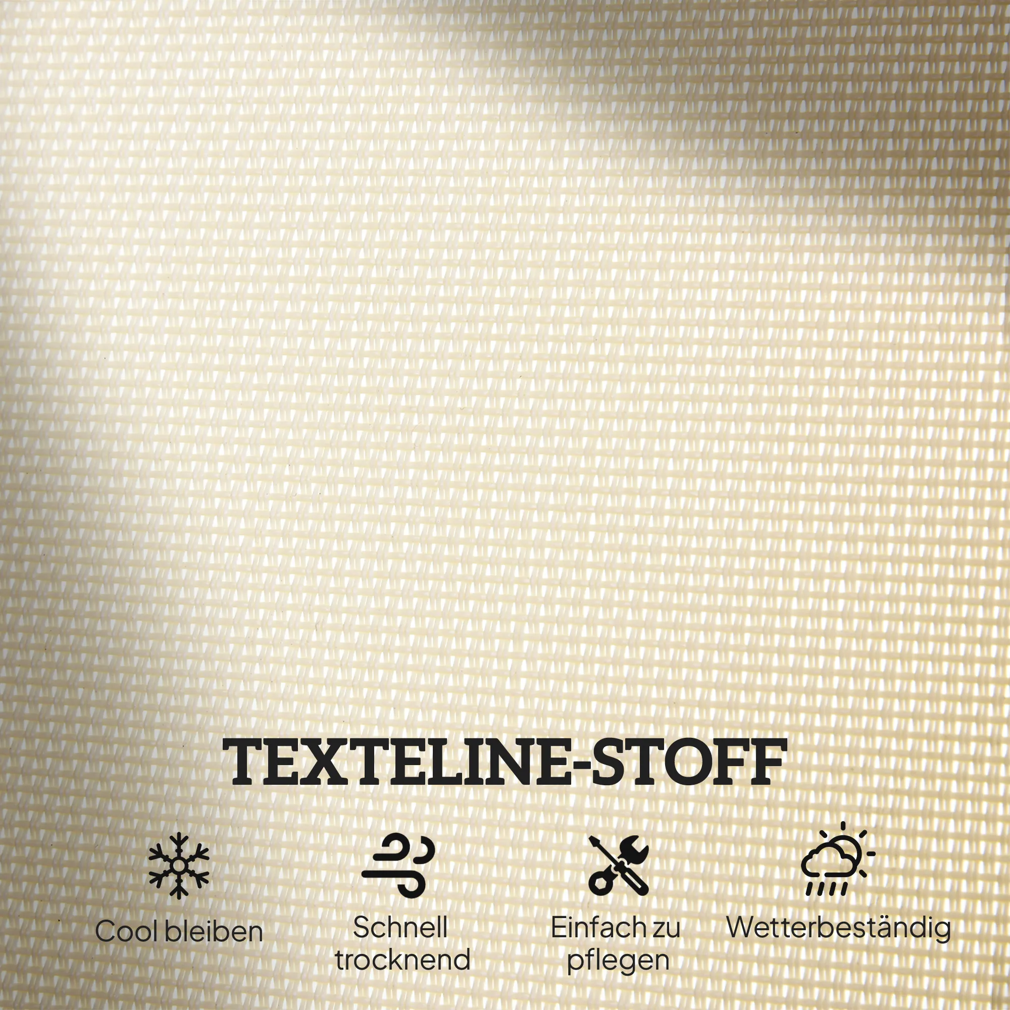 Der Schaukelstuhl besteht aus einer stabilen Stahlrohrkonstruktion und einem luftdurchlässigen, schnell trocknenden Stoff aus Texteline, der witterungsbeständig und pflegeleicht ist.