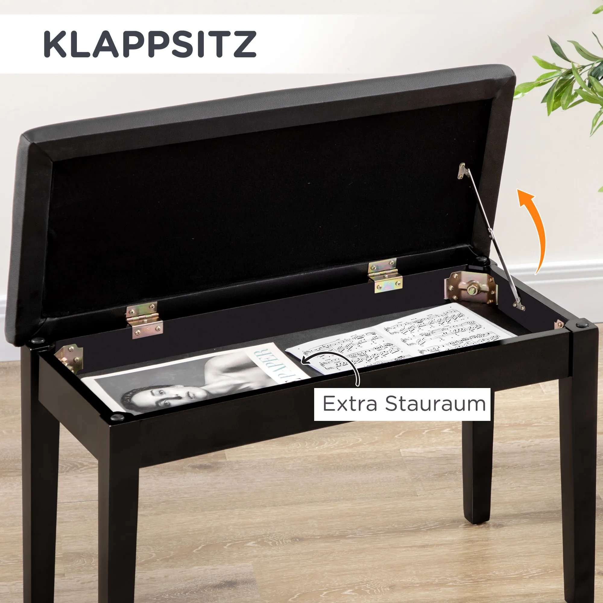 Klavierbank, Pianobank für 1 Person, gepolstert, Holzbeine, Schwarz