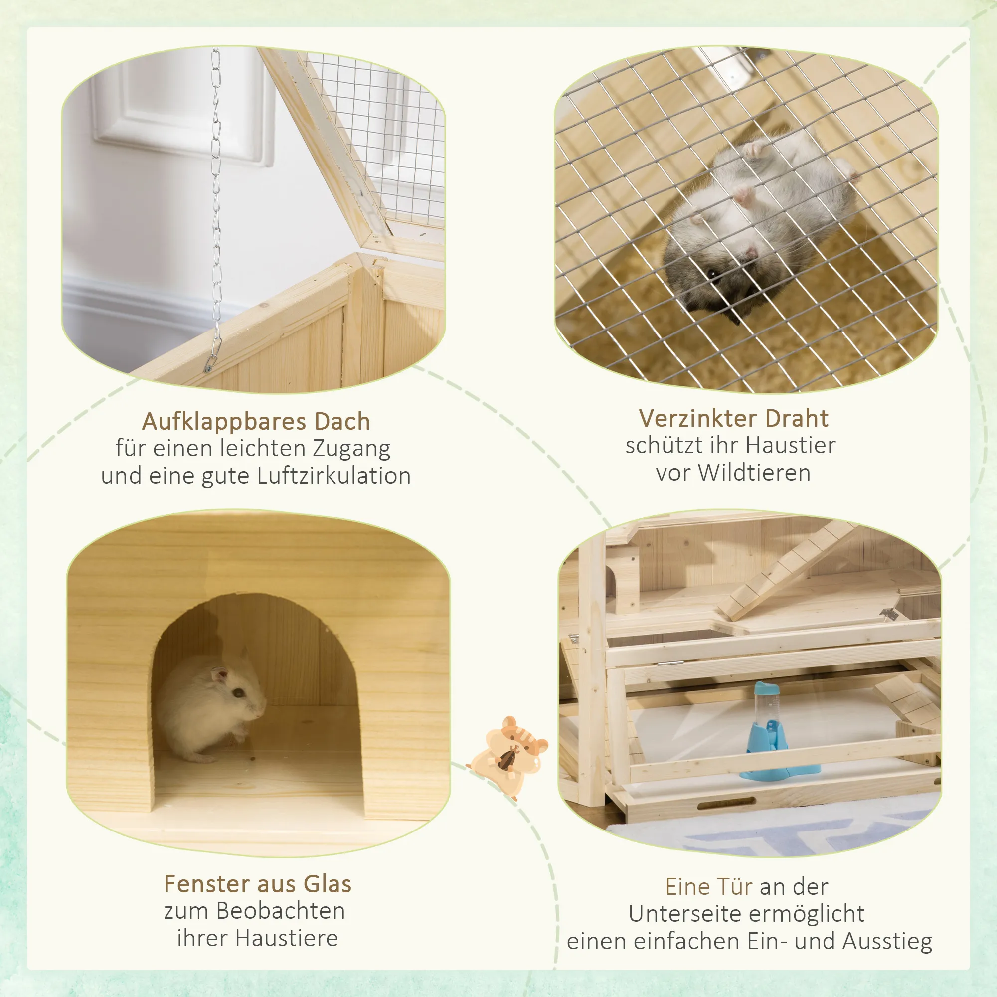 Kleintierkäfig, Nagerkäfig, Nagerheim mit 1 Rampe, 1 Wippe, herausnehmbare Bodenwanne, Tannenholz, Natur