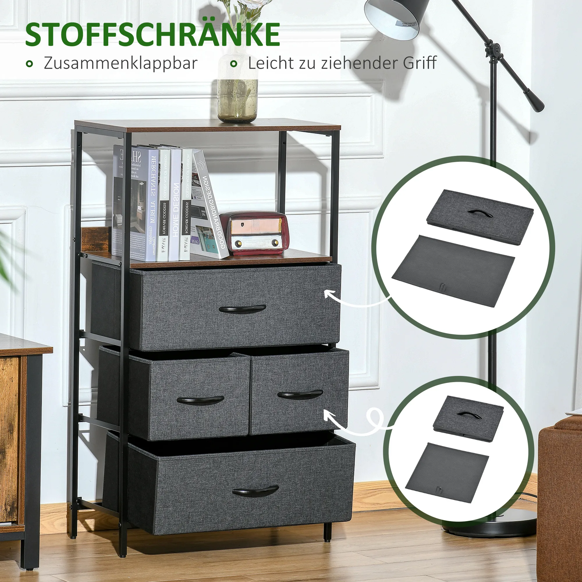 Kommode mit 4 Schubladen aus Leinen Aufbewahrungsschrank mit Ablage Griffen Schwarz