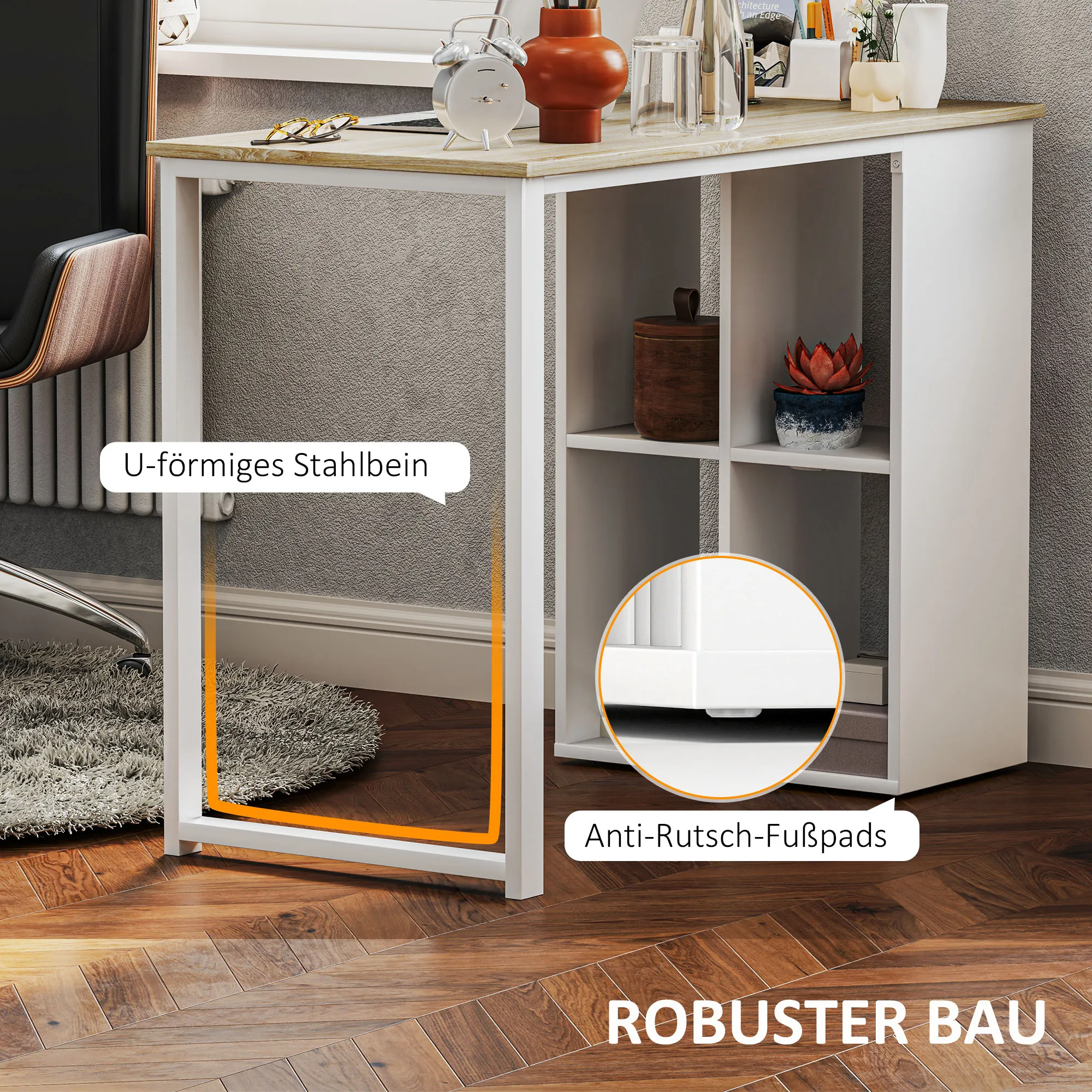 Kompakter Computertisch, Moderner Schreibtisch mit Stauraum-Fächern, für kleine Räume, 100 x 54 x 75 cm, Weiß