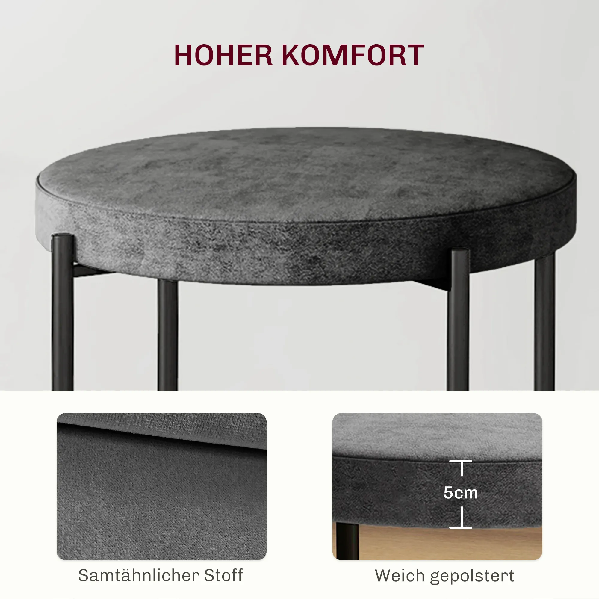 Küchenhocker 4-er Set, stapelbar, Samtoptik, bis 100kg, Stahlrahmen, 41,5 x 41,5 x 46 cm, Dunkelgrau