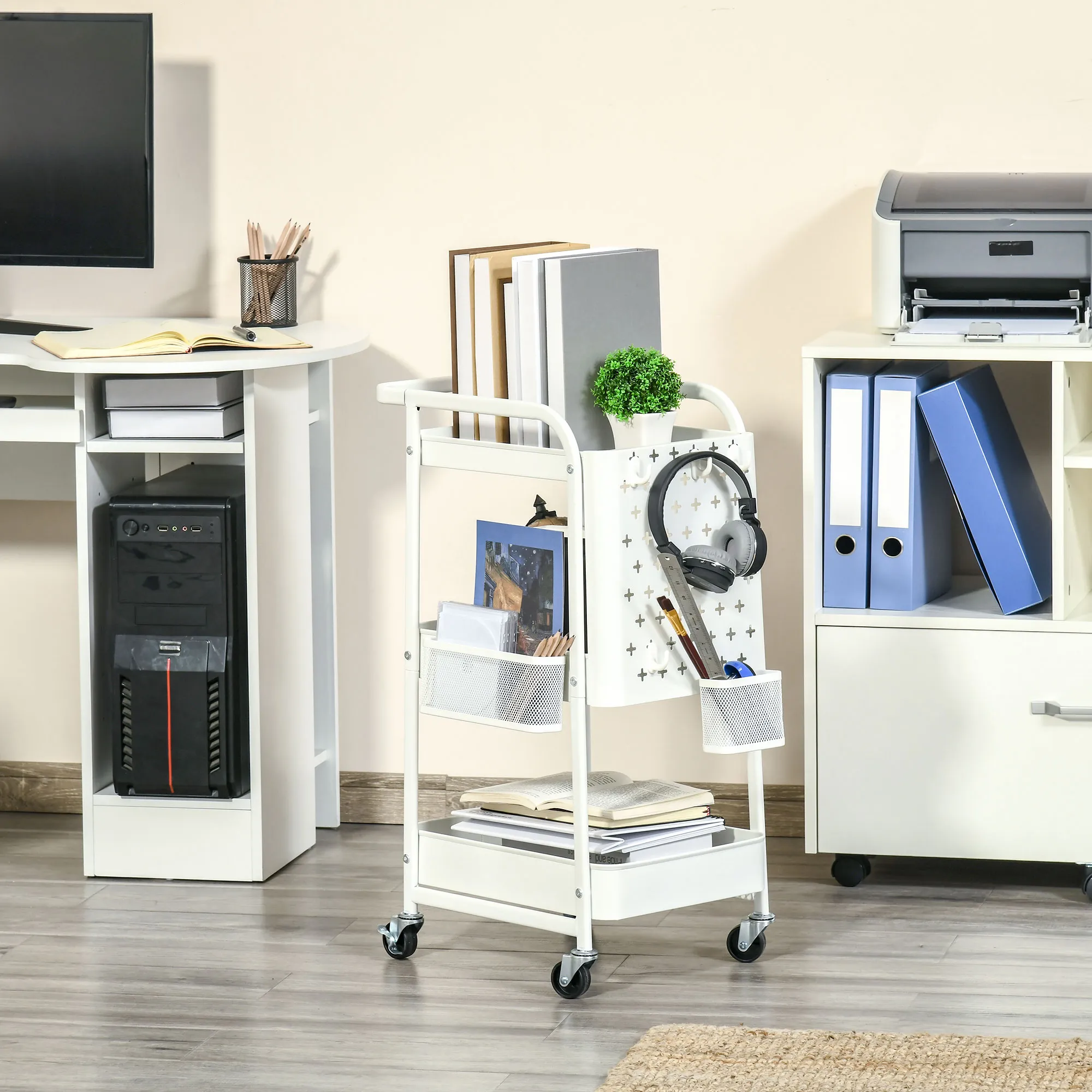 Küchentrolley mit Lochtafel, Handtuchhaltern und Aufbewahrungskörben, 51,5 cm x 32 cm x75,6 cm, Weiß