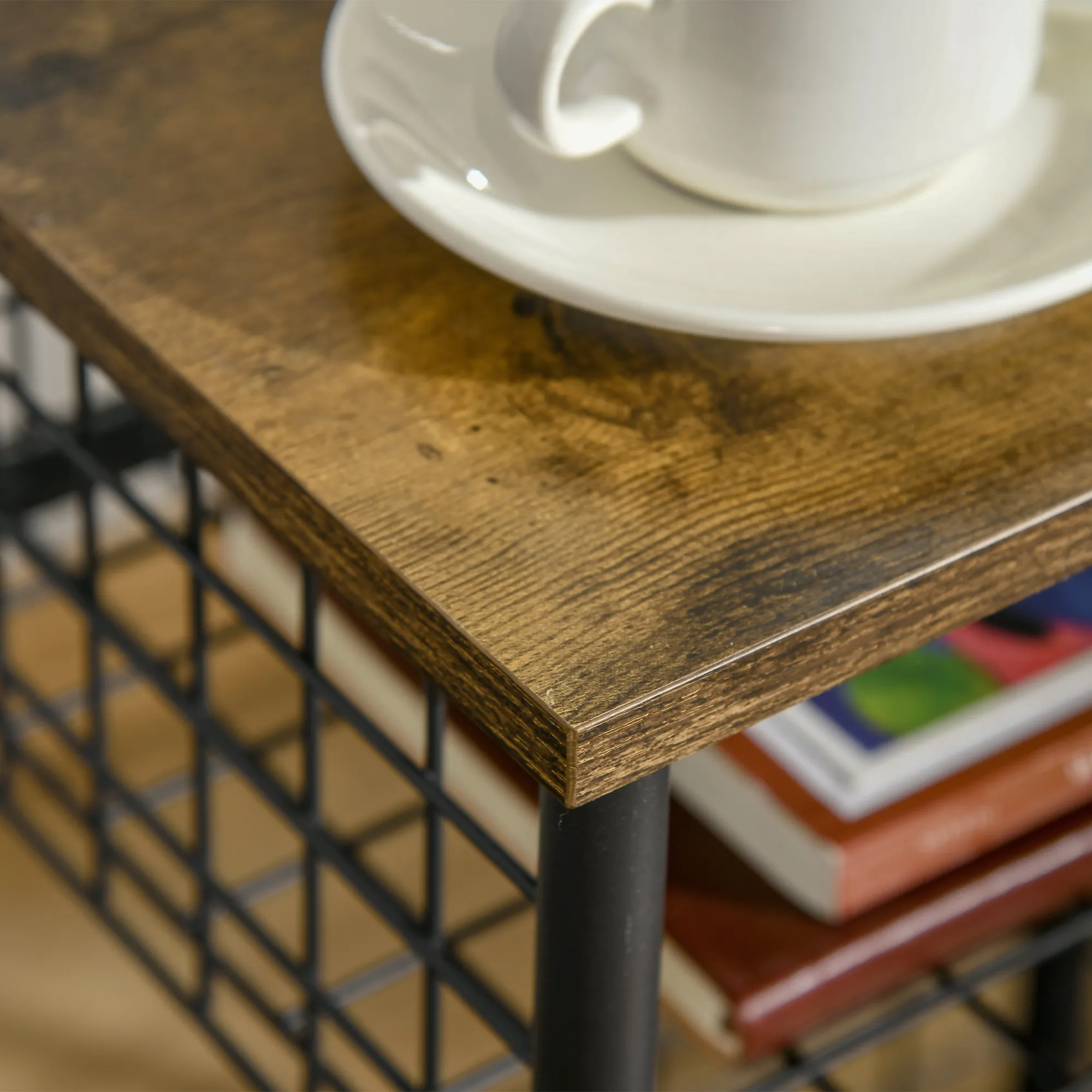 Küchenwagen im Industriedesign 1 Regal 1 Aufbewahrungskorb 4 Räder 40 cm x 30 cm x 62 cm Stahl Schwarz + Braun