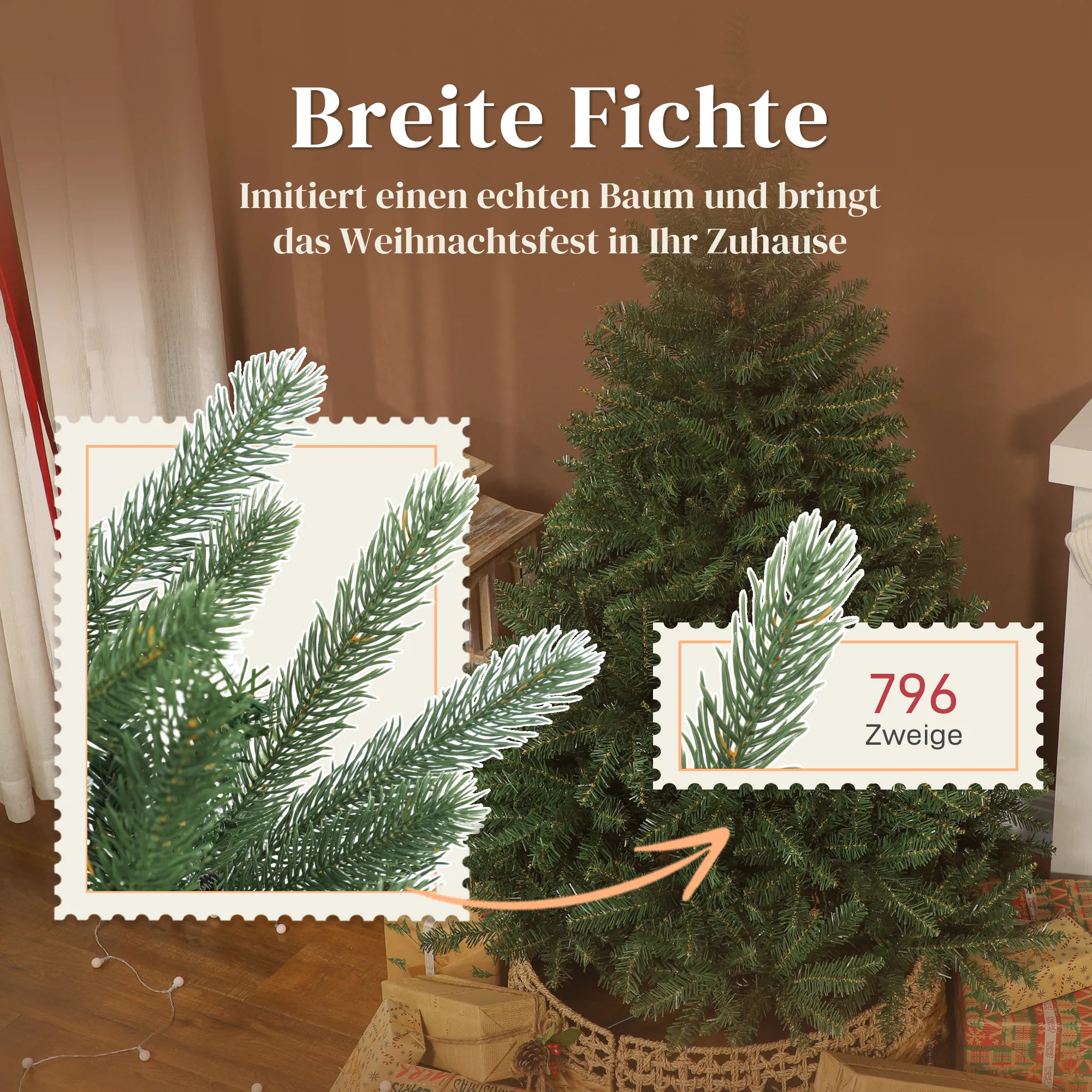 - Breite, realistische Fichtenform und dichte Spitzen für ein üppiges, natürliches und festliches Aussehen