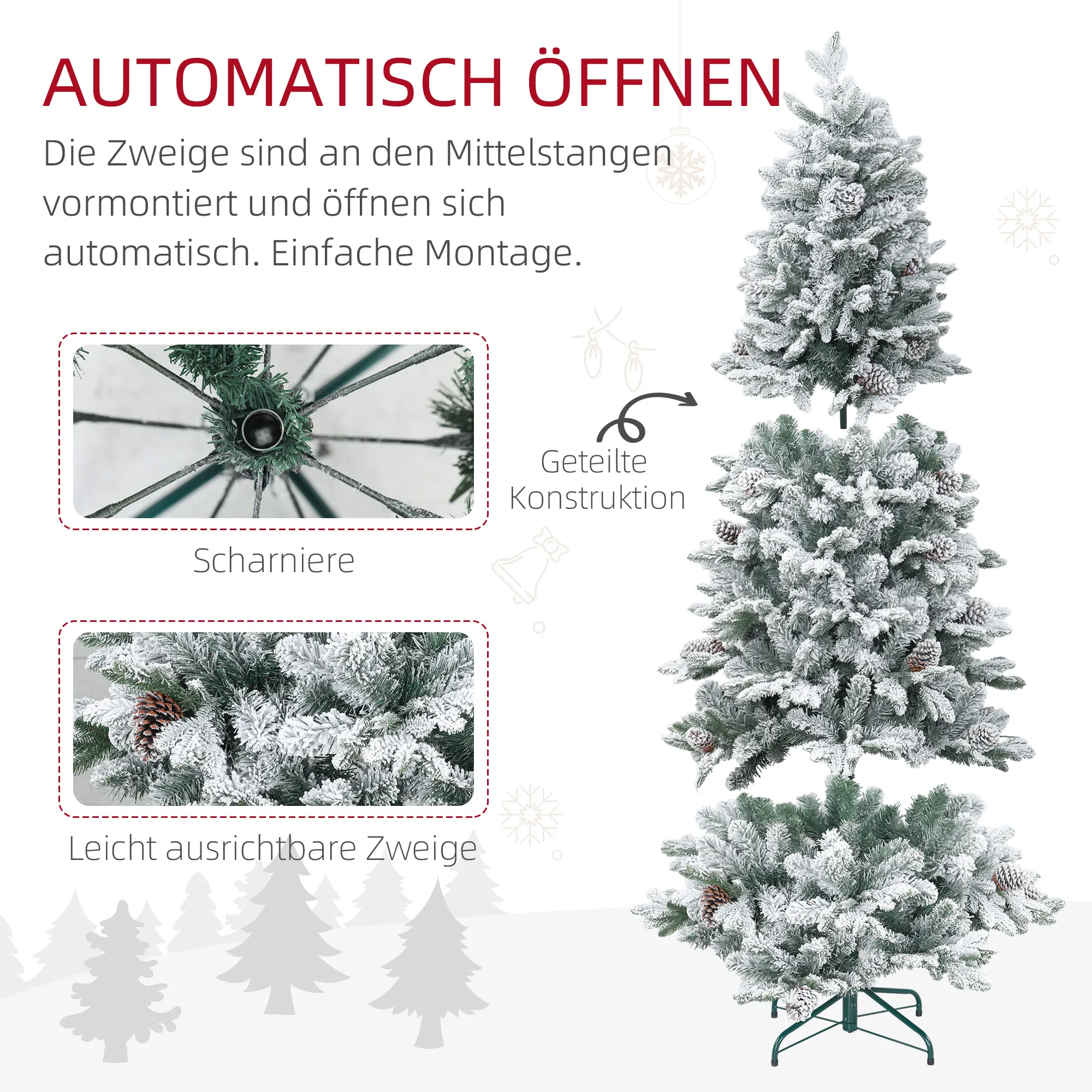 Künstlicher Weihnachtsbaum, Kunstschnee & Tannenzapfen, realistisch, flammhemmend, Metallfuß, 183 cm, Grün
