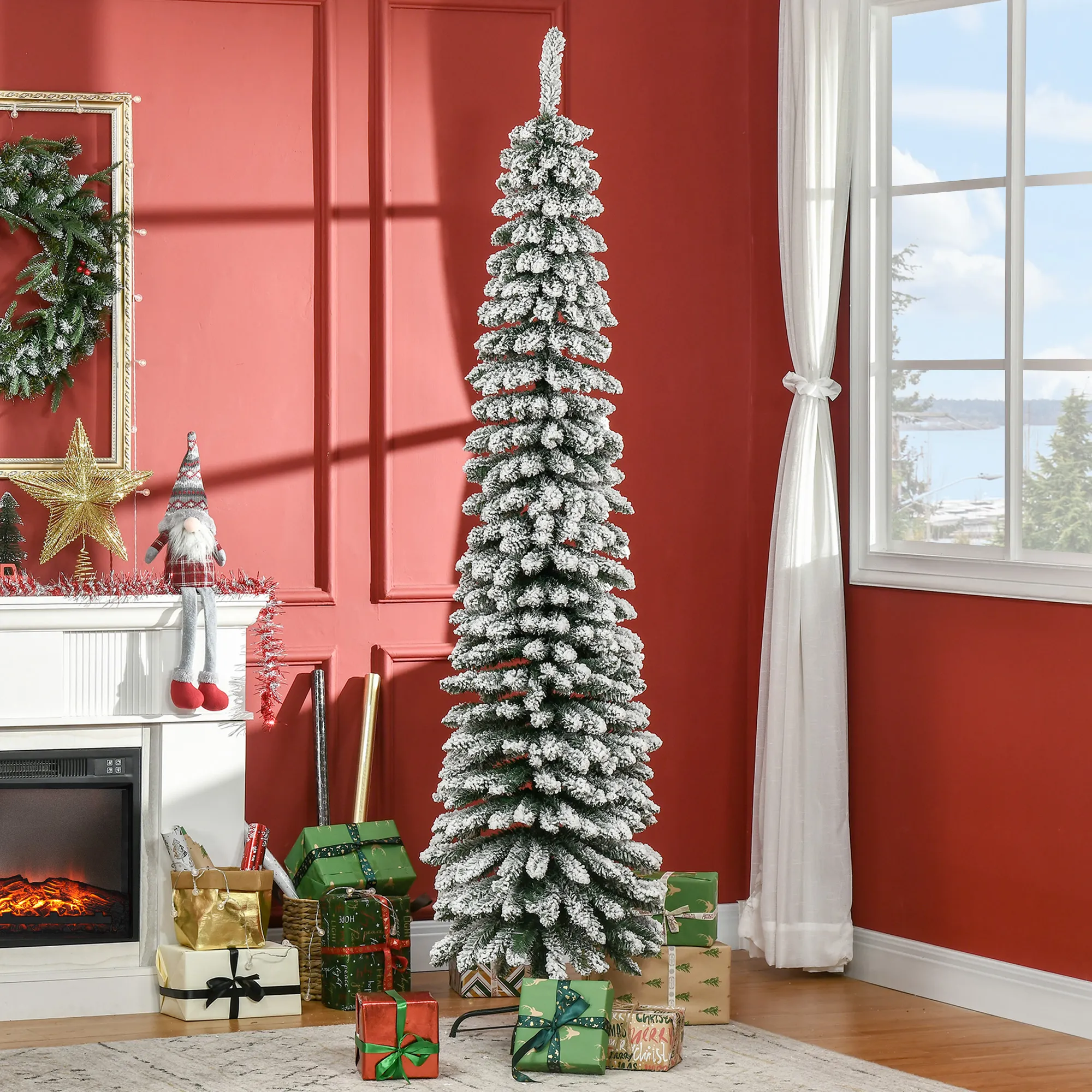 Künstlicher Weihnachtsbaum, schneebedeckt, schmales Design, feuerfest, 210 cm, Grün/Weiß