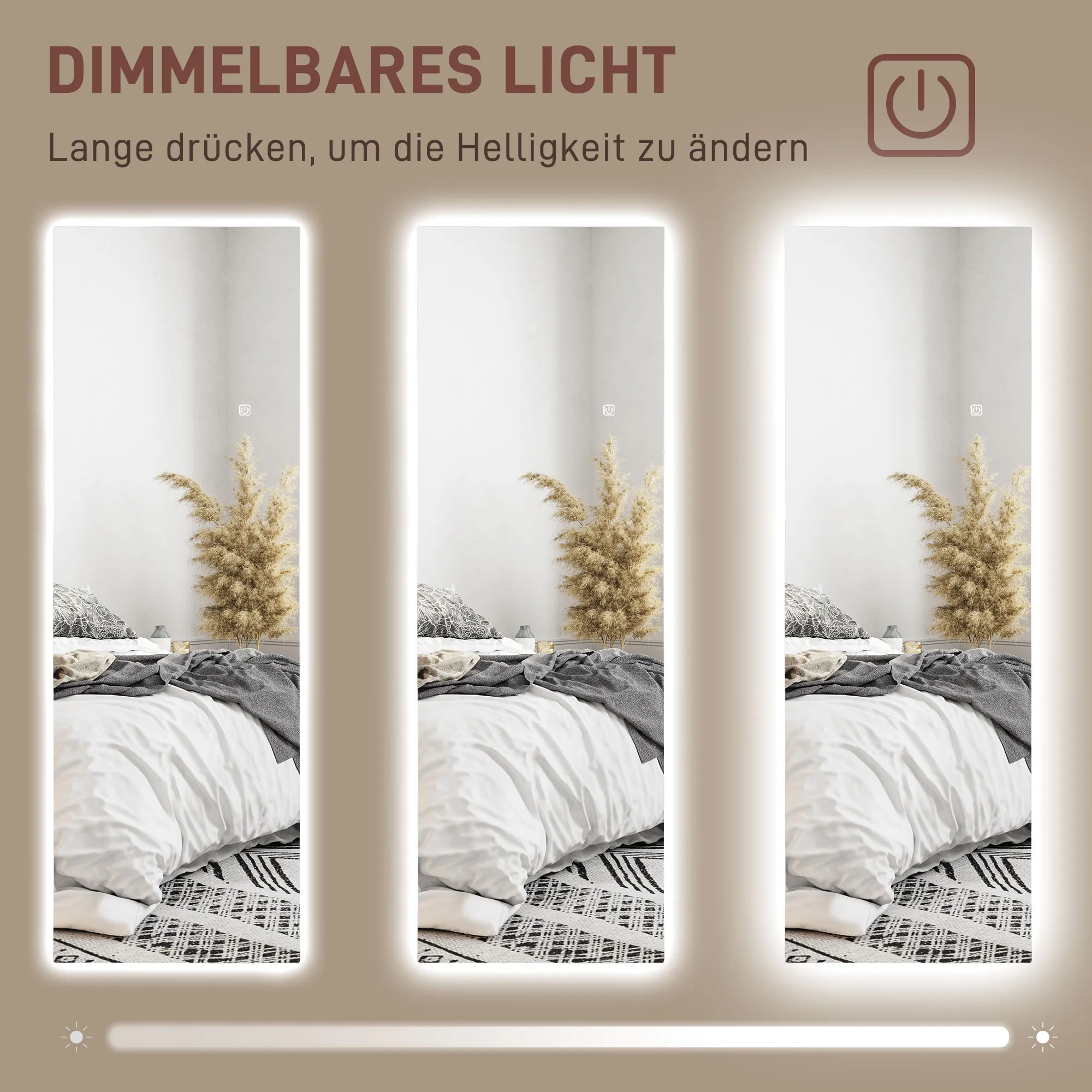 LED Ganzkörperspiegel, dimmbar, rahmenlos, Touch-Steuerung, 40 x 120 cm
