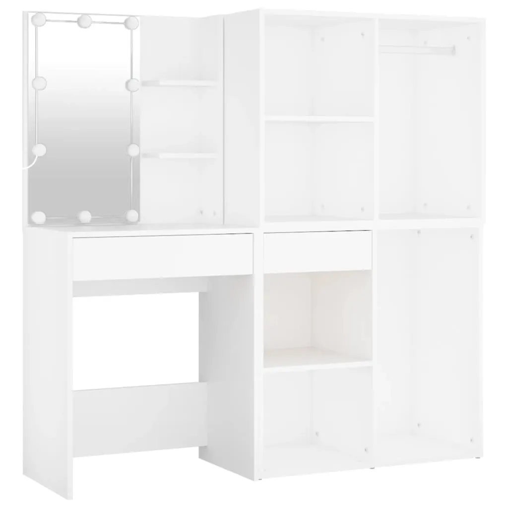 Es ist ein schlichter aber praktischer LED-Schminktisch mit 2 Schränken, der perfekt zu jeder Inneneinrichtung passt. Langlebiges Material: Der LED-Schminktisch mit Schränken ist aus Holzwerkstoff gefertigt. Der Holzwerkstoff ist von außergewöhnlicher Qualität und weist eine glatte Oberfläche auf. Der Frisiertisch zeichnet sich durch Festigkeit, Stabilität und Feuchtigkeitsbeständigkeit aus.LED-Leuchten: Der Kosmetiktisch mit Schränken verfügt auch über LED-Lampen mit USB, die einfach von Warmweiß auf Kaltweiß umgeschaltet werden können. Der Spiegel mit LED-Beleuchtung sorgt für optimale Sicht.Viel Stauraum: Der Schminktisch mit 2 Aufbewahrungsschränken bietet viel Stauraum – perfekt für die ordentliche Aufbewahrung von Make-up, Accessoires, Taschen und Schönheitsprodukten. ACHTUNG:Um das Umkippen zu verhindern, muss dieses Produkt mit der mitgelieferten Wandhalterung gesichert werden. Hinweis:Jedes Produkt wird mit einer Montageanleitung in der Verpackung für eine einfache Montage geliefert.