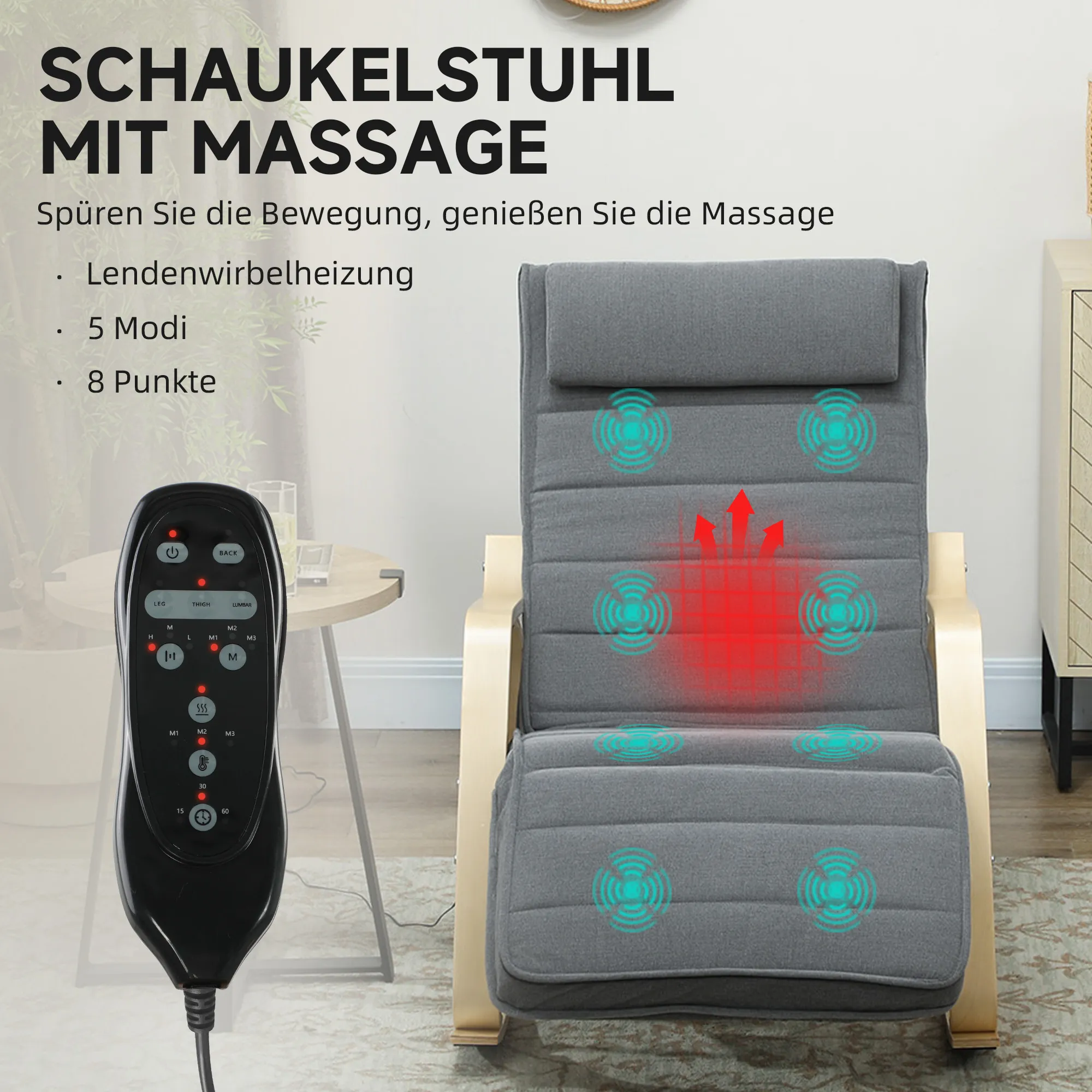 Genieße Entspannung pur mit dem Massage-Schaukelstuhl. Er bietet eine Acht-Punkt-Massage und beruhigende Lendenwärme für maximalen Komfort.