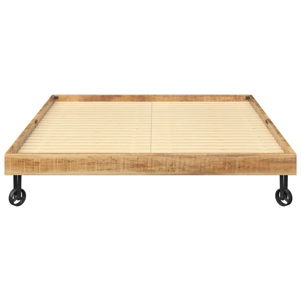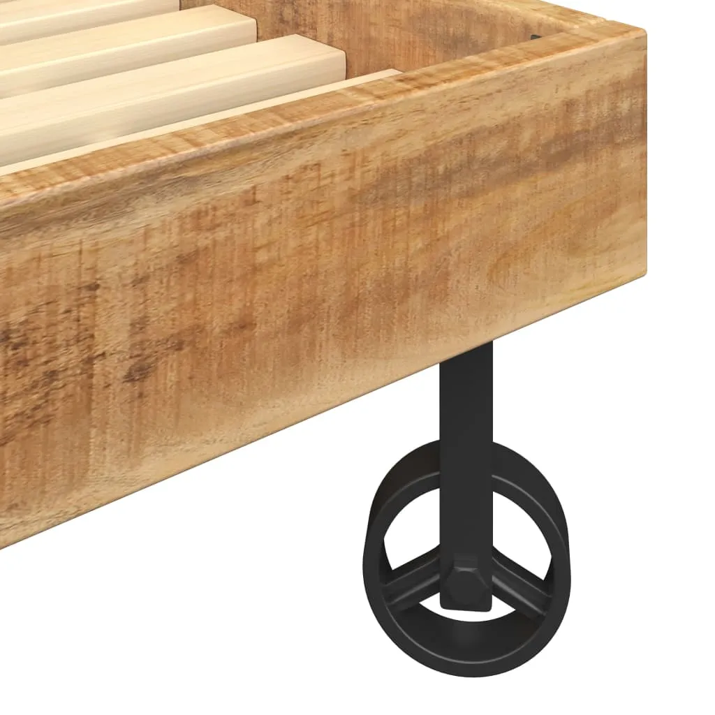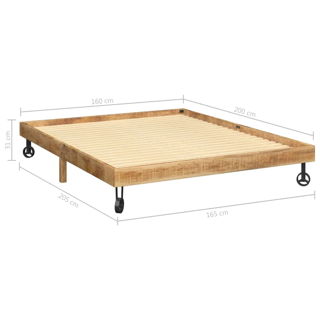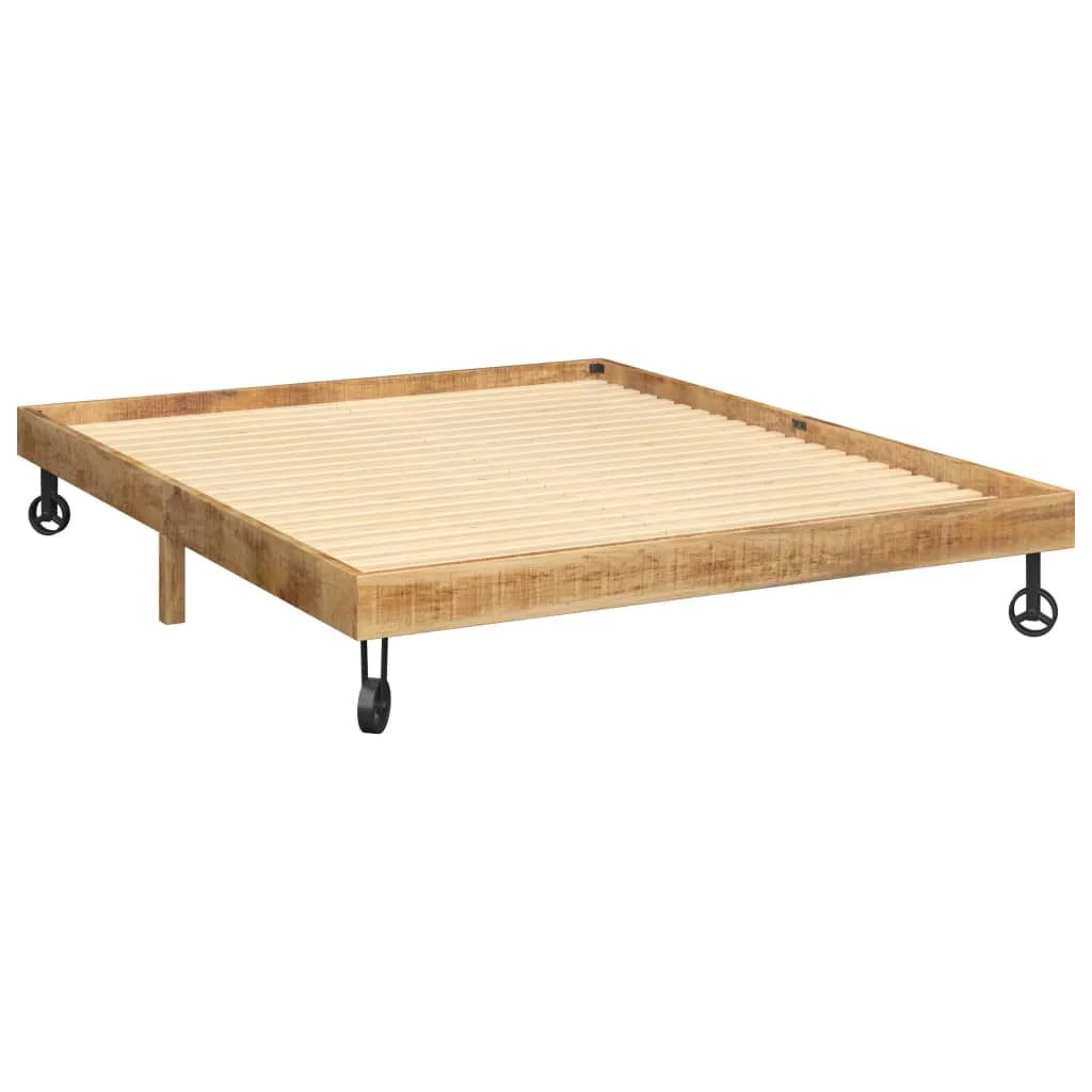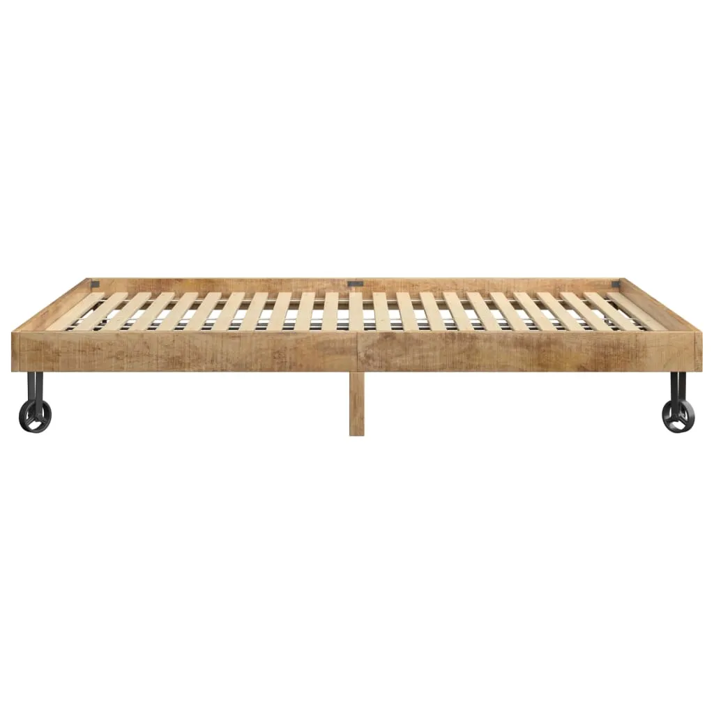 Dieses Doppelbett aus Holz ist genau das Richtige für Sie, wenn Sie Ihr Schlafzimmer durch ein Möbelstück im industriellen Stil aufwerten möchten. Das Doppelbett besteht aus tropischem Mango-Massivholz, das robust, stabil, langlebig und schön ist. Die Handwerkskunst trägt zum spektakulären Retro-Stil des Bettes bei. Das Mangoholz weist natürliche Holzmaserung auf, die dem Möbelstück seinen rustikalen Charme verleihen. Es macht auch jedes Bett einzigartig und unverwechselbar. Die Füße in der Mitte erhöhen die Stabilität des Bettes. Die robusten Stahlräder vervollständigen den industriellen Look und erleichtern das Umstellen des Bettes. Der Bremsmechanismus macht die Möbel während des Gebrauchs bewegungsunfähig. Die Latten werden von einem stabilen Balken in der Mitte getragen, wodurch die Stabilität erhöht wird. Die Lieferung beinhaltet nur einen Bettrahmen die Matratze ist nicht im Lieferumfang enthalten. In unserem Shop finden Sie passende Matratzen. Das Produkt ist einfach zu montieren. Hinweis: Farben variieren von Stück zu Stück und machen jeden unserer Betten einzigartig die Lieferung erfolgt in zufälliger Reihenfolge.